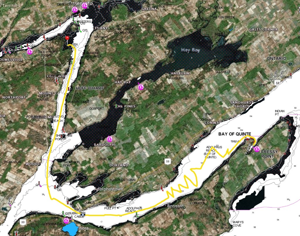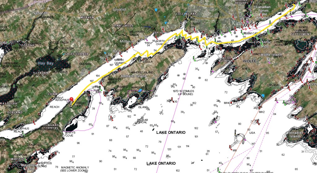 The inside passage is often used by pleasure craft to avoid the larger waves around the outside of Prince Edward County. As we were expecting some stronger seas, we decided to do this route over a couple of days. It had been a few years since we had sailed this area and we had some fond memories.