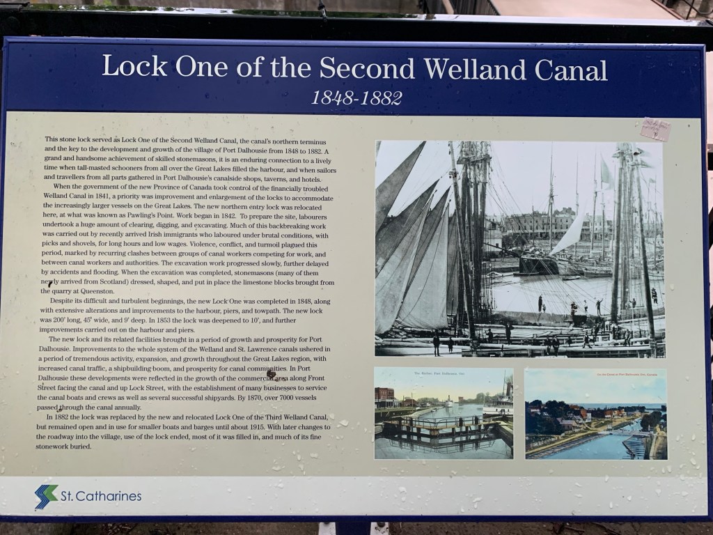 Our friend Shane arrived early afternoon, dropped off his bag and then drove his car down to the Sugarloaf Marina in Port Colborne. This was were we were going to tie up after the Welland canal. It’s about 45km away from Port Dalhousie, so Shane had brought his electric scooter to get back to the boat. It was a test for how long his batteries would last. He made it about 25km and got close enough to get an Uber for the rest of the trip. With all the work and worry about shuttling transportation done, we had a great dinner and a few drinks but settled in early to be rested for what awaited us the next day. I must admit I was nervous, but also excited to leave Lake Ontario behind and have our boat lifted the 99.5m (326’) over the Niagara escarpment, bypassing Niagara Falls and finally reaching Lake Erie. The Welland is 43km long and consists of 8 locks, numerous lift bridges and tunnels below it. Most of the locks are about 80’ wide, 766’ long with a lift/decent of 43-49 feet.