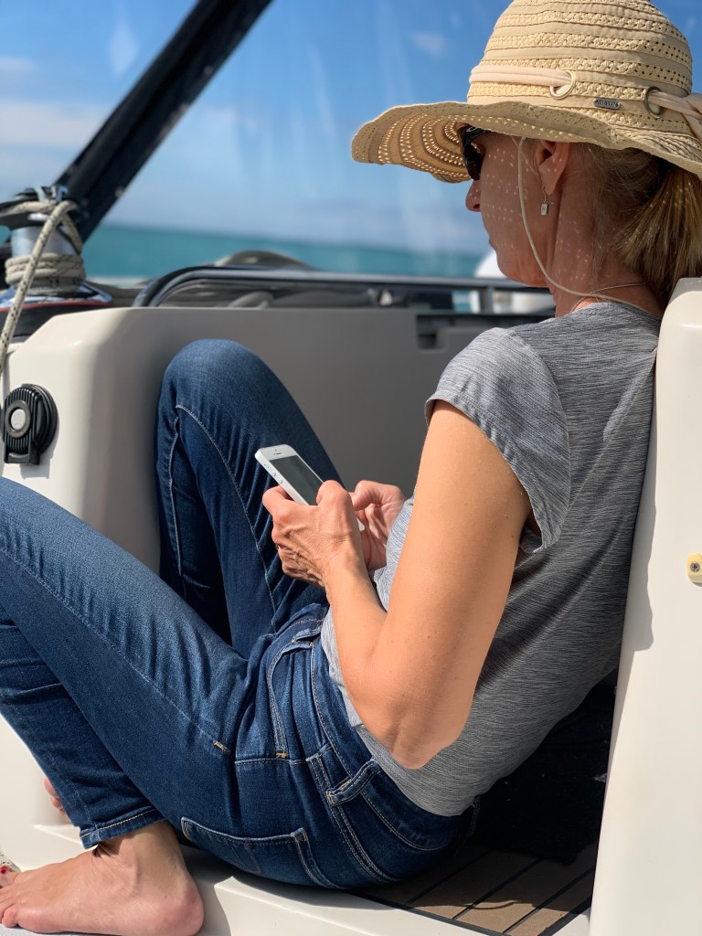 We had a perfect spot very close to the fuel dock (slip 6), with parking close by and a short walk to the beach. An old friend from university days who I had contacted while we were in Port Stanley was able to come up from London and we went for a dinghy ride to check out all the boats. A bit later it started to rain quite heavily but we still had a great visit and it was awesome to catch up over a couple of bottles of wine, steak, butter tarts and fresh cherries.