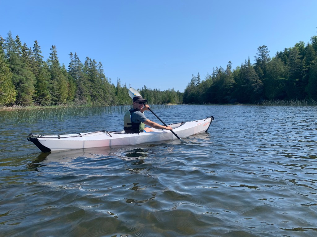 Although it was busier than what we normally choose for an anchorage we stayed 3 nights. We got our kayaks out, dinghied to Killarney for gas and doughnuts, had a late lunch at the famous fish and chips place on the docks, resupplied a little and checked out other places to anchor in Killarney Bay. There’s a nice spot behind Pine Island that Frank and Marie-Claude from Komeekha had mentioned. It might get a bit of a surge in strong West winds but did look fairly quiet.