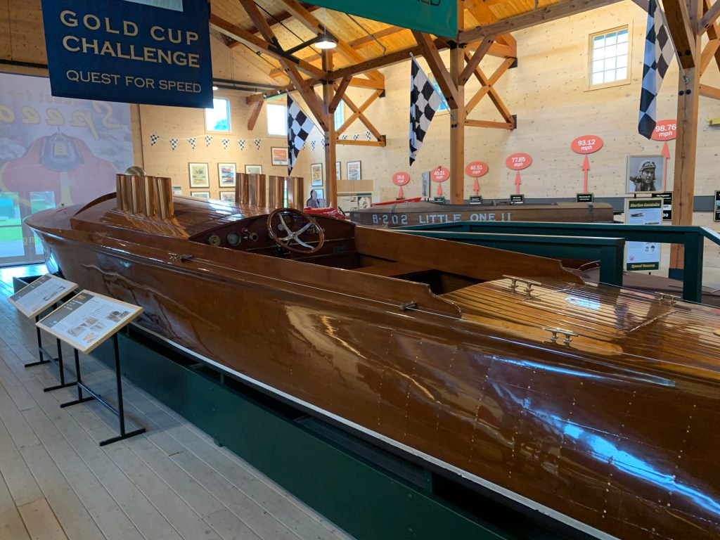 The Antique Boat Museum is a real treasure trove for anyone interested in boats. There’s something for everyone, from pictures and info on old sailboat wrecks in the depths of Lake Ontario to beautifully restored wooden power boats, racing boats, skiffs, sculls and canoes. It’s easy to spend an entire day exploring and we only scratched the surface by just touring the museum. There’s also a guided tour of the opulent houseboat “La Duchesse” as well as outings on the St. Lawrence in July and August. Personally, we got a real thrill out of seeing a few Pocock Sculls, as we both had just read Daniel James Brown’s “The Boys in the Boat”.