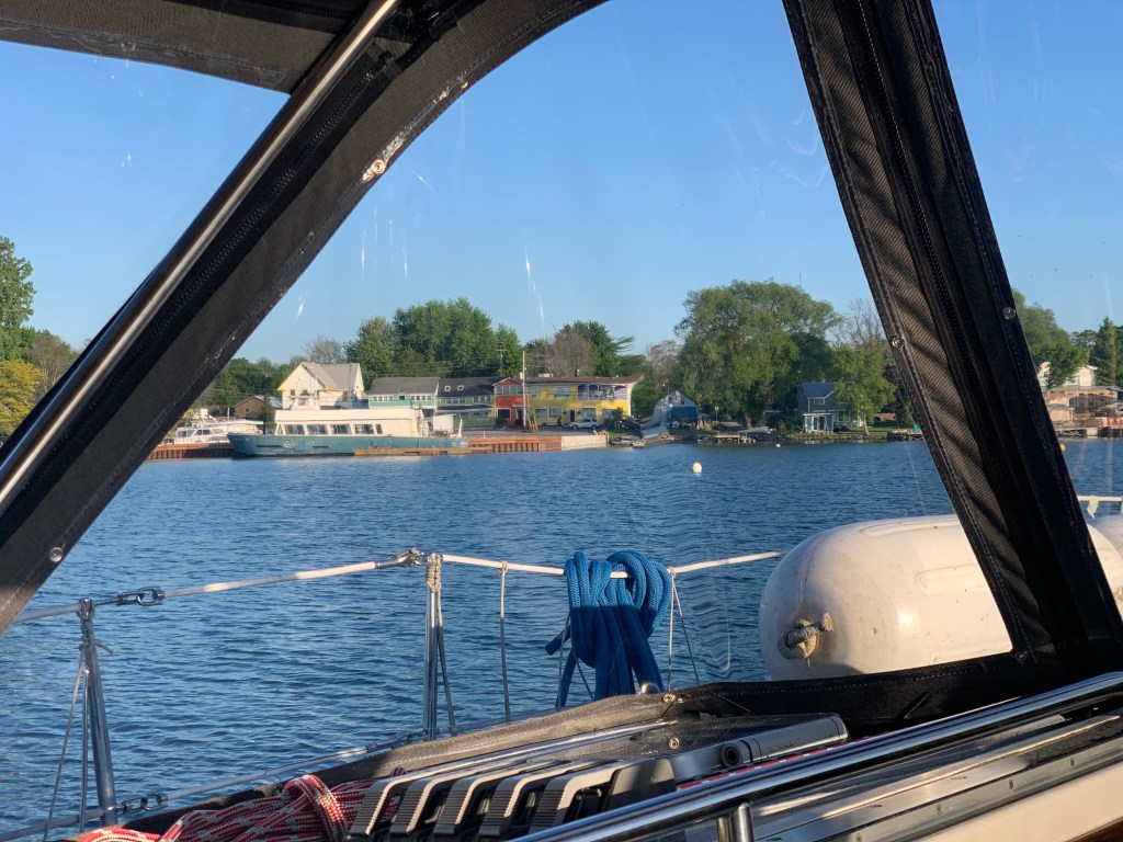 Our first night in the US was spent at the Clayton Yacht Club. We got a reciprocal ($25 US a night) and were able to tie up at the outside of the southern T-Dock. The club is super friendly and Leonard and his wife from “Our Gal Sal”, grabbed our dock lines, gave us the scoop on Clayton and the Club and even hoisted the Canadian curtesy flag on their boat just for us. Apparently, we were the first Canadian boat visiting in 2 years (due to the Pandemic). The club is beautiful and Eric, the VC, was immensely helpful and accommodating. If you have a shallow draft boat, I would definitely recommend stopping here. For most sailboats the depth is a bit of a problem and the club boats are all power. The outside dock is also not very comfortable in east wind. We had hardly any wave or wind, yet even the small slap of the waves woke us up a number of times during the night.