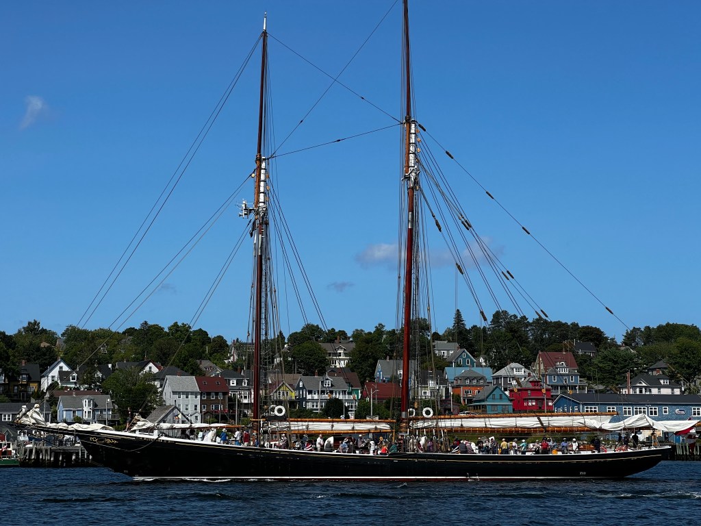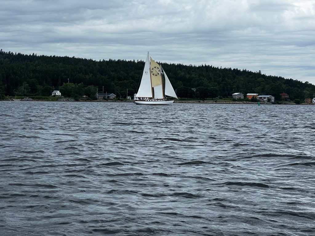 We stayed in this anchorage for another day as the rain and wind howled, and were delighted to see about 6-8 schooners of varying sizes tack up and down the bay under full sail. They were taking part in the annual schooner races that held each year in LaHave, and moored in the same bay.