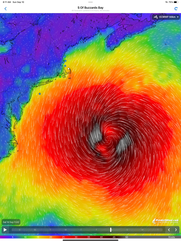 Mike assured us that he had seen about 9′ of depth around the mooring next to him, even at low tide. So we moved Vitae and this was our spot for the next 3 days. It’s always a bit nerve racking when you trust your home to a mooring, as you don’t know how well it’s maintained. But the town of Old Saybrook it pretty stringent at inspecting them every year. And we had no issues with depth or holding while Lee moved by. We only got some gusts up to 20kts and by early Saturday morning the winds were already getting lighter.