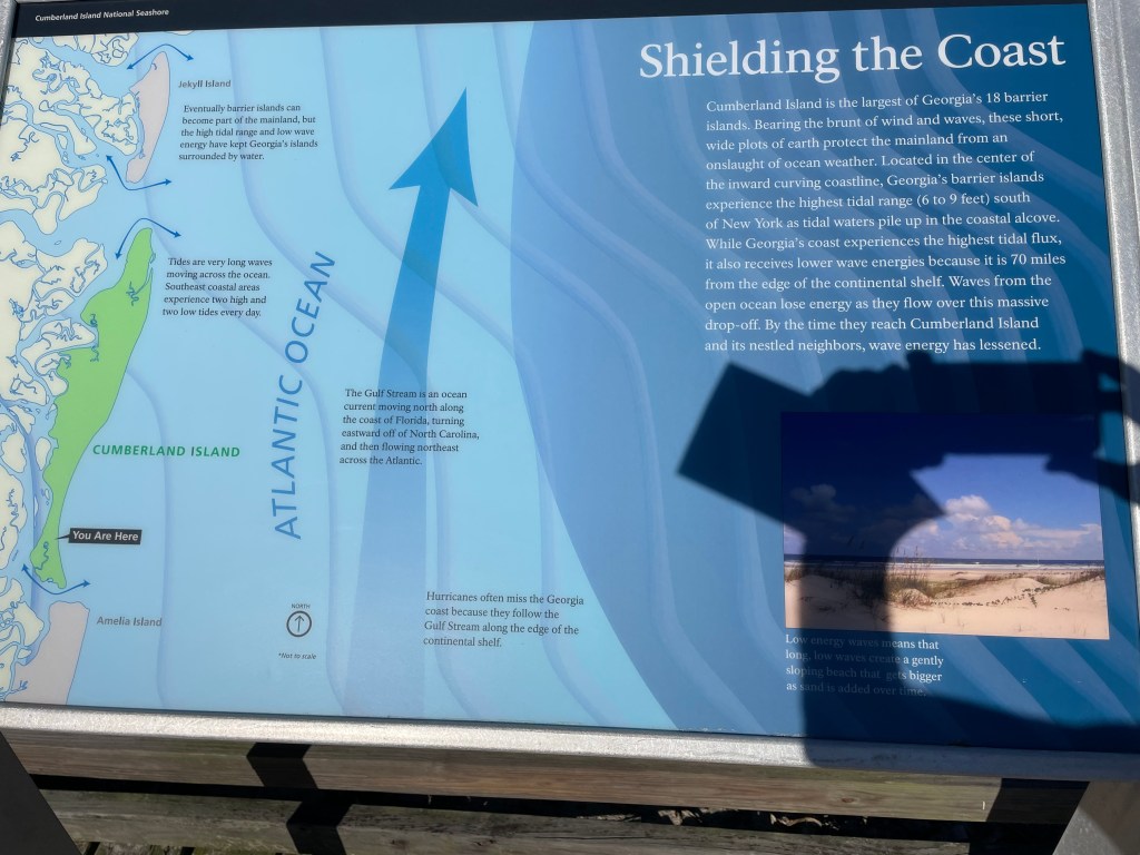 This plaque explains the importance of the barrier islands to the character of the Georgia coast line which sees some fairly intense tidal ranges of 6′ to 9′.