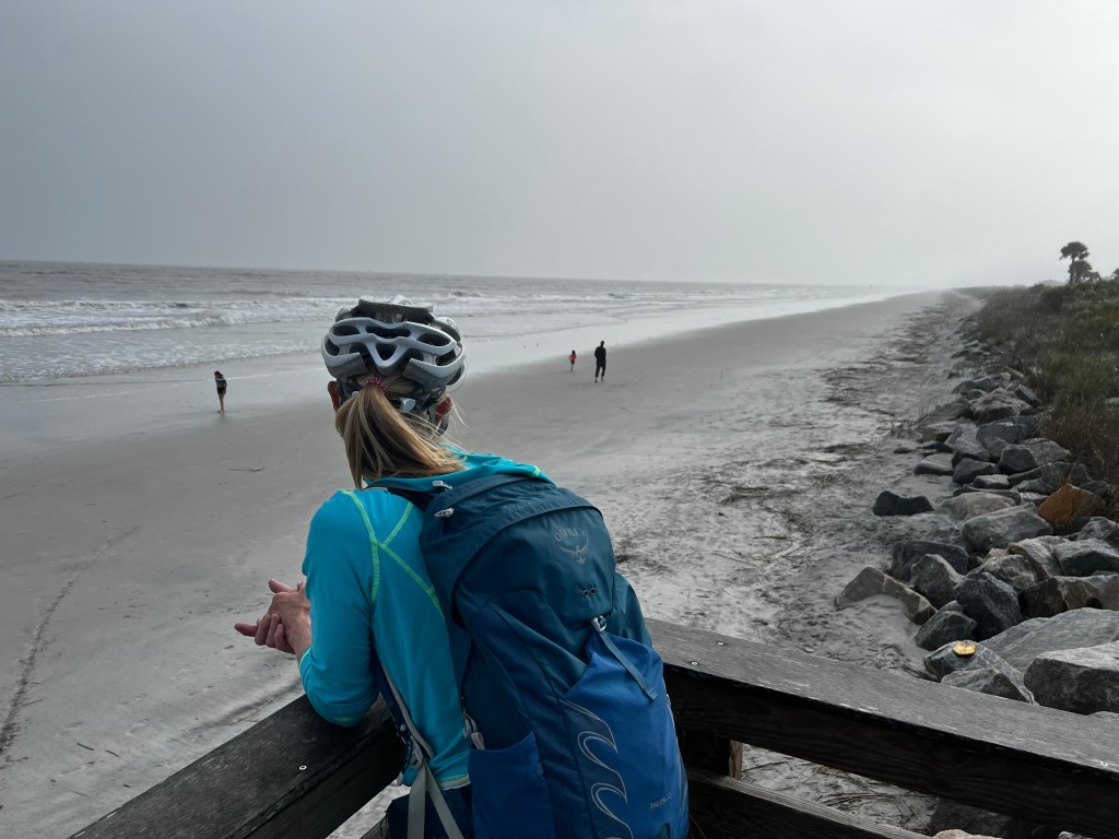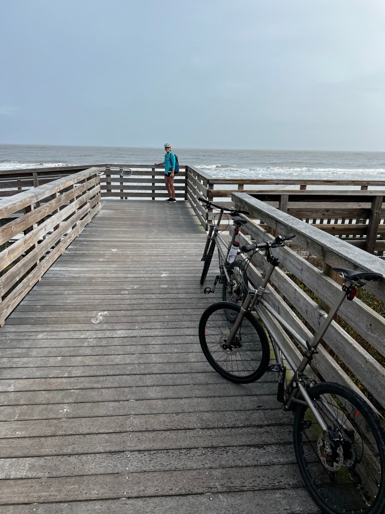 The second day we did some of the interior trails through the woods and were rewarded with seeing our first alligator. Definitely, a highlight – and not in a scary way. He or she was sunning itself in one of the slow moving rivers and looked rather sleepy. After a few hours of cycling around we got hungry and stopped at Tortuga Jacks on the beach. A live band, open air bar and view of the beach made the shrimp, steak and chicken Tacos we shared even more delicious.