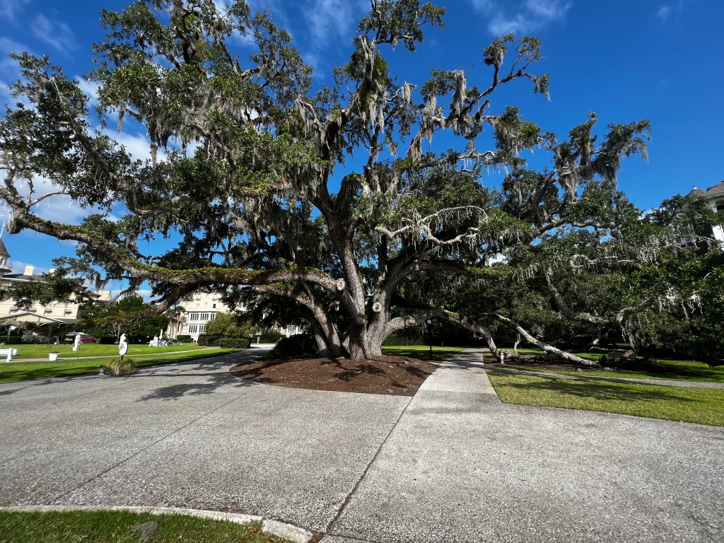 Jekyll Island, another barrier island, is a vacationers paradise of paved bike trails, sand dunes, miles and miles of wild beaches next to historical mansions, tons of history mixed in with resorts, hotels, a golf club and nature preserves. We took a couple days to explore and thoroughly enjoyed cycling the quiet island, which I am sure is much busier in the hight of summer than in November. We were here just before the American Thanksgiving and watched as they were busy decorating the parks and historic district with Christmas lights. So strange to see palm trees and oaks covered in Spanish moss with twinkly lights! Wish we could have stayed until Nov. 24 when they finally turn them on, it would have looked spectacular (350+ Light displays and 45,000+ lights on the big tree). It’s interesting that this island became an exclusive club for the rich and powerful in the 1800s. Families like the Rockefellers, Vanderbilts, Pulitzers, Bakers and Morgans spent their summers here in elaborate “cottages”. They are being lovingly restored and some can be rented for private functions.