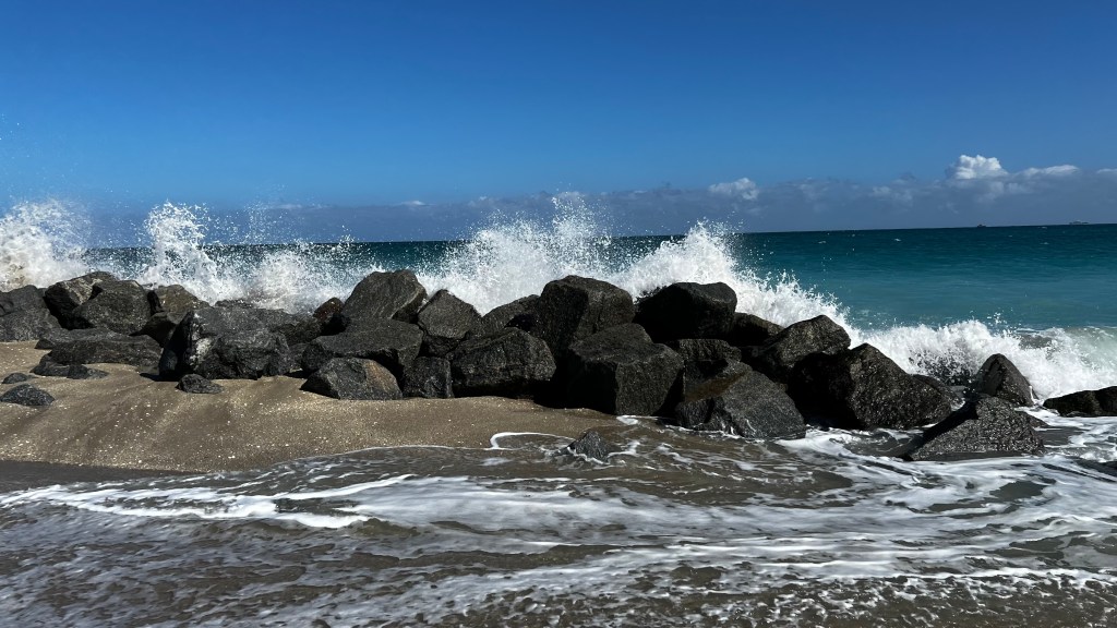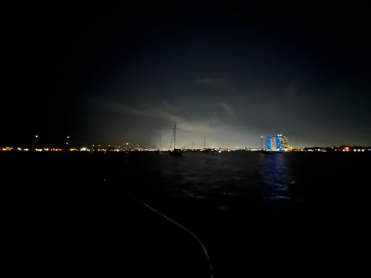 A large storm front was coming and we moved Vitae further south down Lake Worth, just north of the Flagler bridge where we would have lots of room to swing. Here, we were just with a few boats, like Foggy, Willow and African Queen with lots of scope out. It was a little less convenient to get to the dinghy dock at the Sailing Club and still a ways to the free city docks south of the bridge, but turned out to be the best choice for the Nor’Easter that came through. It raged for 3 days, blowing 30+kts sustained and one night we saw 58kt gusts. We had a group text going and heard boats were dragging everywhere. Summer and Brian on Mojo, another boat in our group was anchored just south of Flagler Bridge. A great spot to be in so close to the public docks and easy access to town. They were somewhat more protected between the bridges but also had way less swing room. The next day we saw Summer’s short video as a sailboat nearly missed them and then got tangled in another boats anchor. Further north of us boats that had no one on them at the time, broke lose or dragged through the tight anchorage. There had been already a few boats on the shore or sunk in the area before the storm but now there were even more. A sweet little ketch was now sitting on the rocks at Peanut island. Many of our friends didn’t sleep that night carefully watching their own and other boats. I must admit that we did go to bed and actually slept, setting our anchor alarm and seeing that none of the boats around us were dragging.