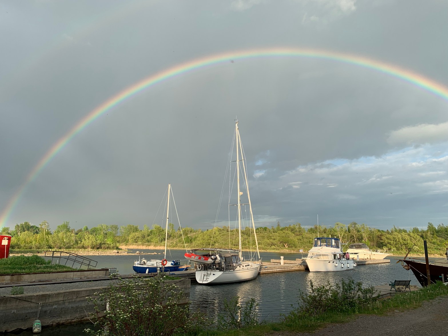 This was Launch Day May 22, 2021 at 1pm at Iroquois Marine Services. We have always dreaded the departure from this spot due to the shallow and lengthy cut we must navigate to get to the St. Lawrence River.