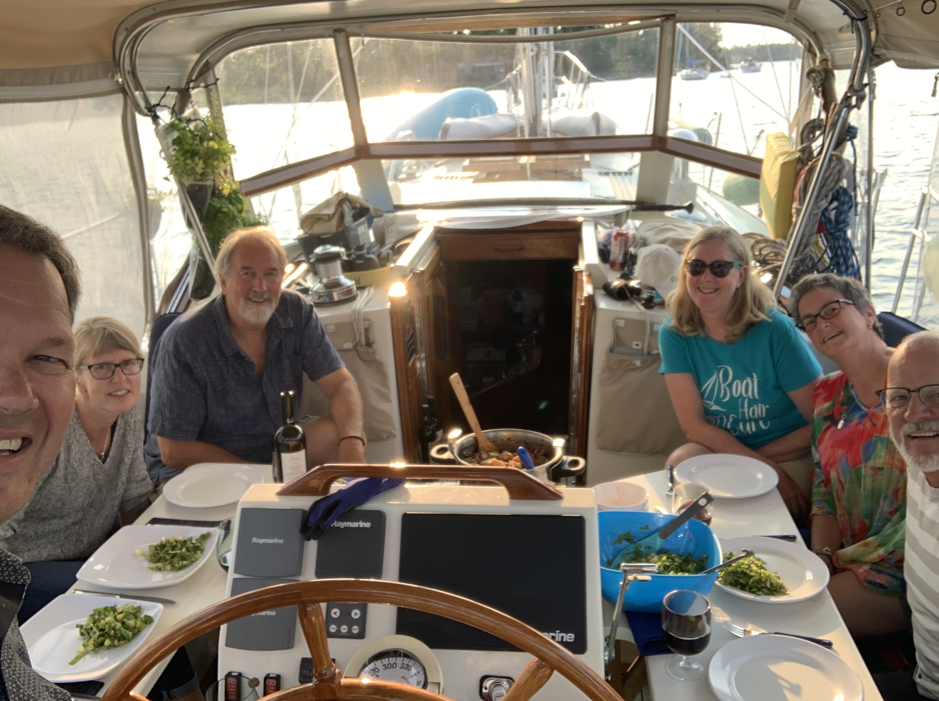Dan from Gaviidae put on a fabulous dinner for all of us the next night. We had braised short ribs with roasted cauliflower, mushrooms, potatoes, carrots and Marie-Claude added a salad. We all pitched in Wine and had a great evening. “Gaviidae” is a most comfortable boat and the cockpit seats more than 6 with no issues. I think we didn’t get back to our boat until after 11.