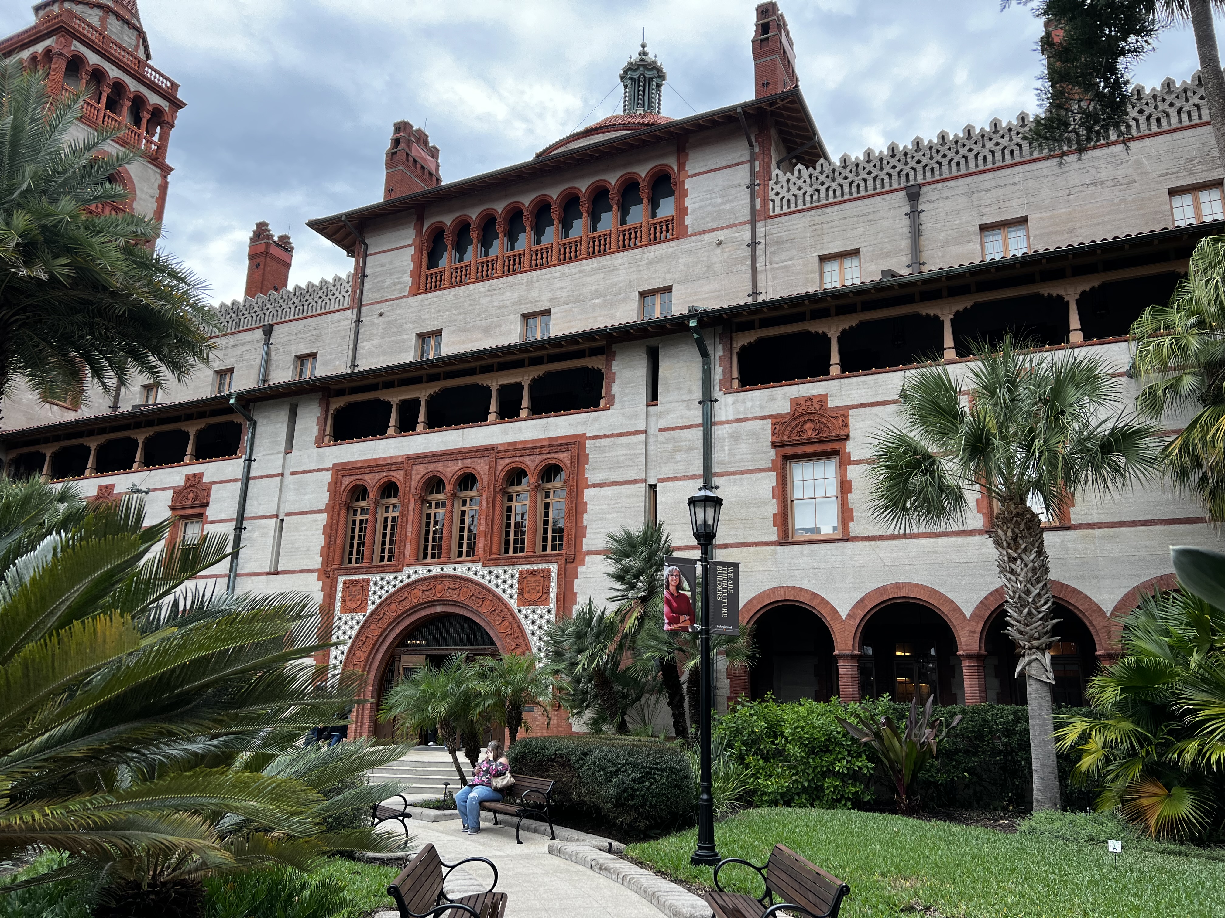 We ended up walking through more of the quaint streets together, visited a part of Flagler College, a private 4 year college, housed in the opulent Ponce de Leon hotel. It was built in 1887 and houses one of the largest Tiffany stained glass window collections, with more than 79 windows.