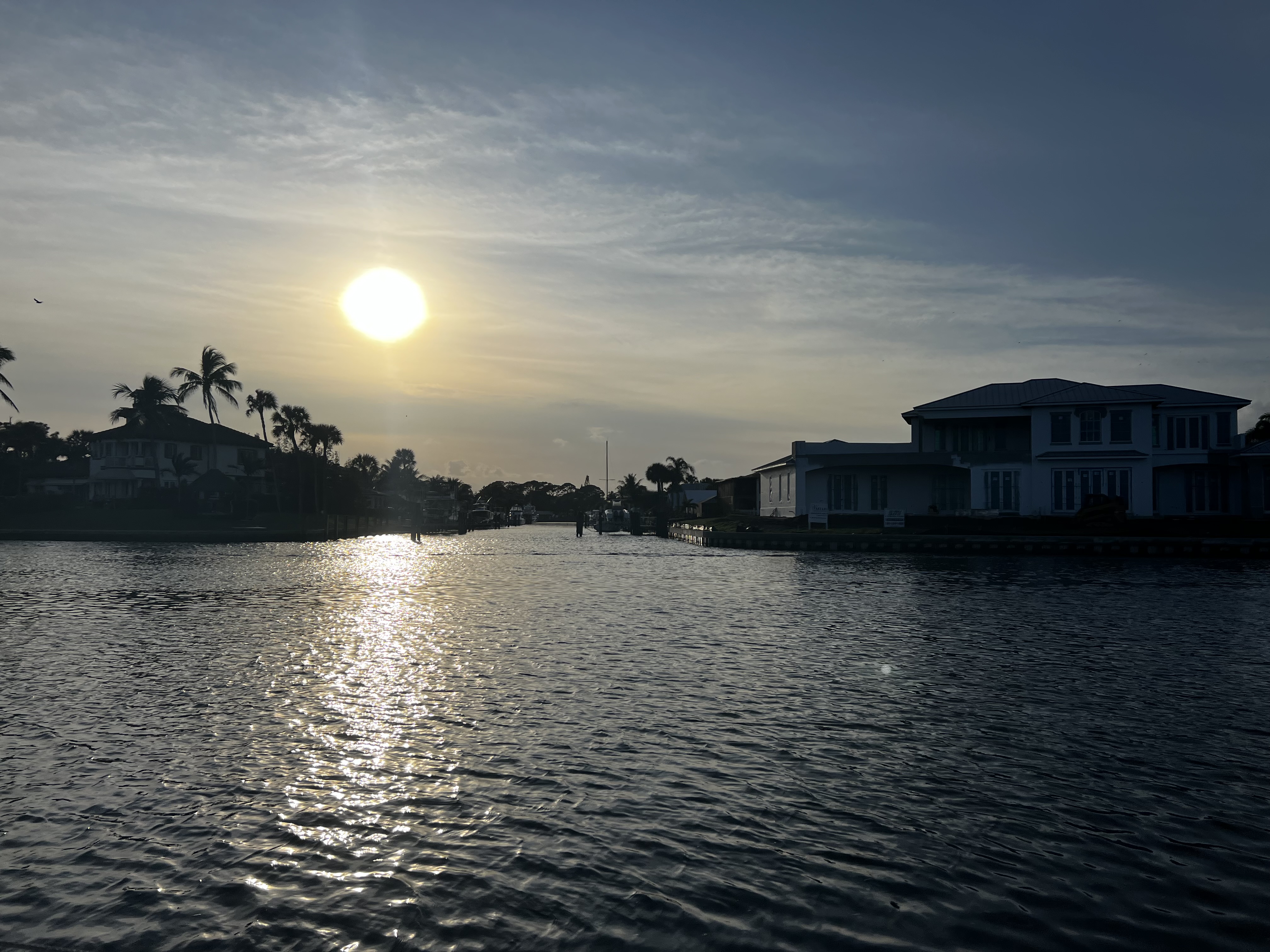 We had more one quiet anchorage in Hobe Sound by before Jupiter Beach and before we would hit the busy area of Lake Worth and West Palm Beach. The waters were calm and it would be a culture shock to enter West Palm the next day. On that last day we did come through Fort Pierce and saw a rather striking vessel. It turned out to be the Trimaran UltimEmotion 2 sitting at anchor just north of the North Fort Pierce Bascule Bridge. It had been damaged in the Newport to Bermuda race (August 2023) and limped back to Charleston in 37hours escorted by the US Coast Guard for 27 of those to make sure the crew was safe. It had been leading the race at the time when its 102′ mast had separated from the carbon fibre hull. The boat was still sitting in the Indian River Lagoon, in its damaged state awaiting repair. A very cool boat – but we didn’t feel so bad just puttering by slowly and taking it safe!