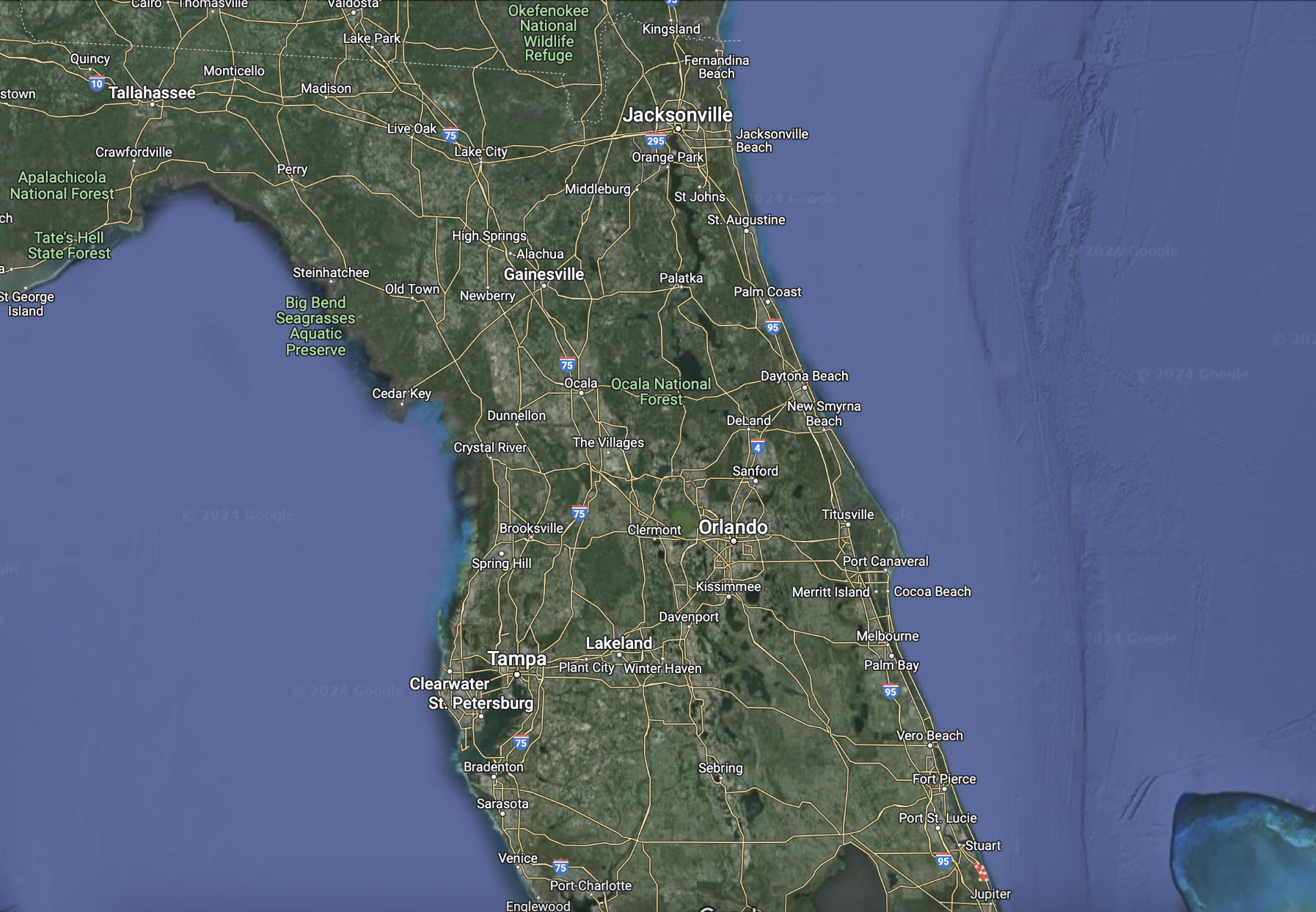 After our fun adventures on Cumberland Island, we were so glad we stopped there instead of further down the ICW. Once we crossed the St. Mary’s River Inlet into Florida and followed along the Amelia River/ICW through Fernandina Beach, we entered a very industrial part of that area. Although there are a number of anchorages with many boats it’s really not pretty. This map shows the area we travelled along the ICW on the east coast of Florida from just north of Jacksonville (Fernandina Beach) south to Jupiter (Hope Sound).