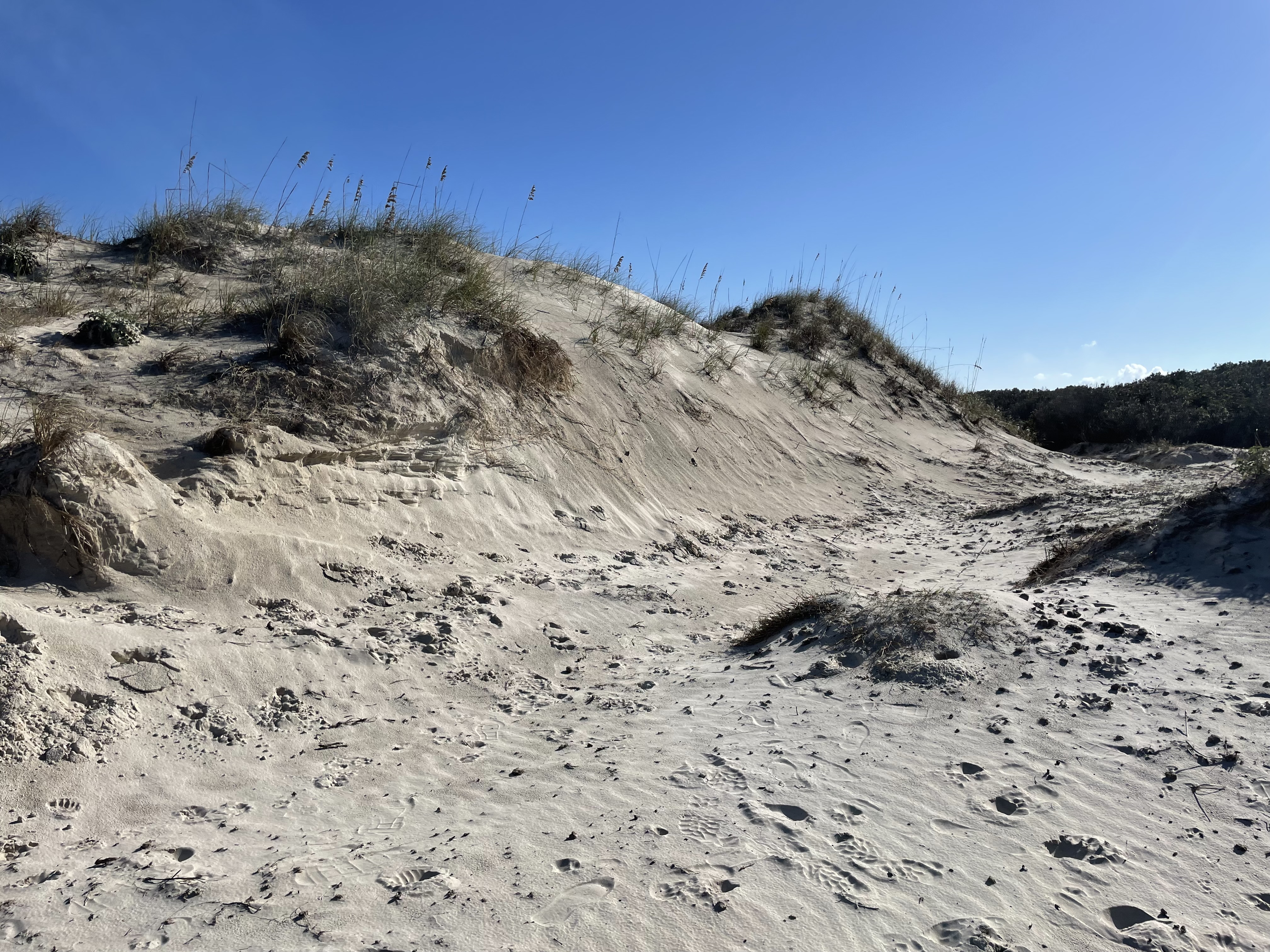 We anchored in the southern bay of the island right in front of the National Park Sea Camp dock (which is also the Ferry dock). For a weekly fee of $15 per adult (or $45 for a yearly pass that includes 4 adults), you have access to the park and dinghy dock. The staff were super helpful and gave us lots of info on what to explore and see. So we struck out to just walk across the island from the Ranger cabin to the Ocean side and beach, which took maybe 10 minutes. We watched as campers coming in by ferry, used camp carts to take their tents and supplies along the same trail and walk into the rustic camp ground.