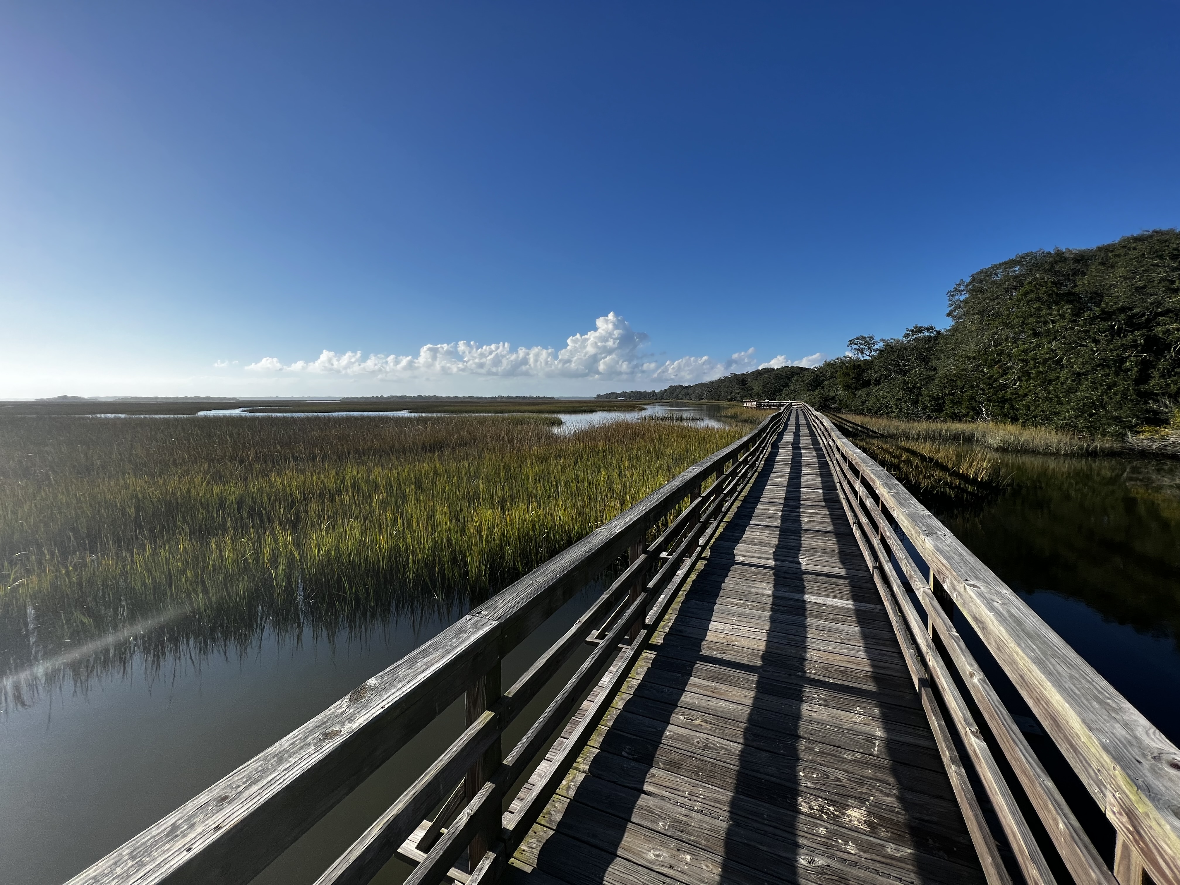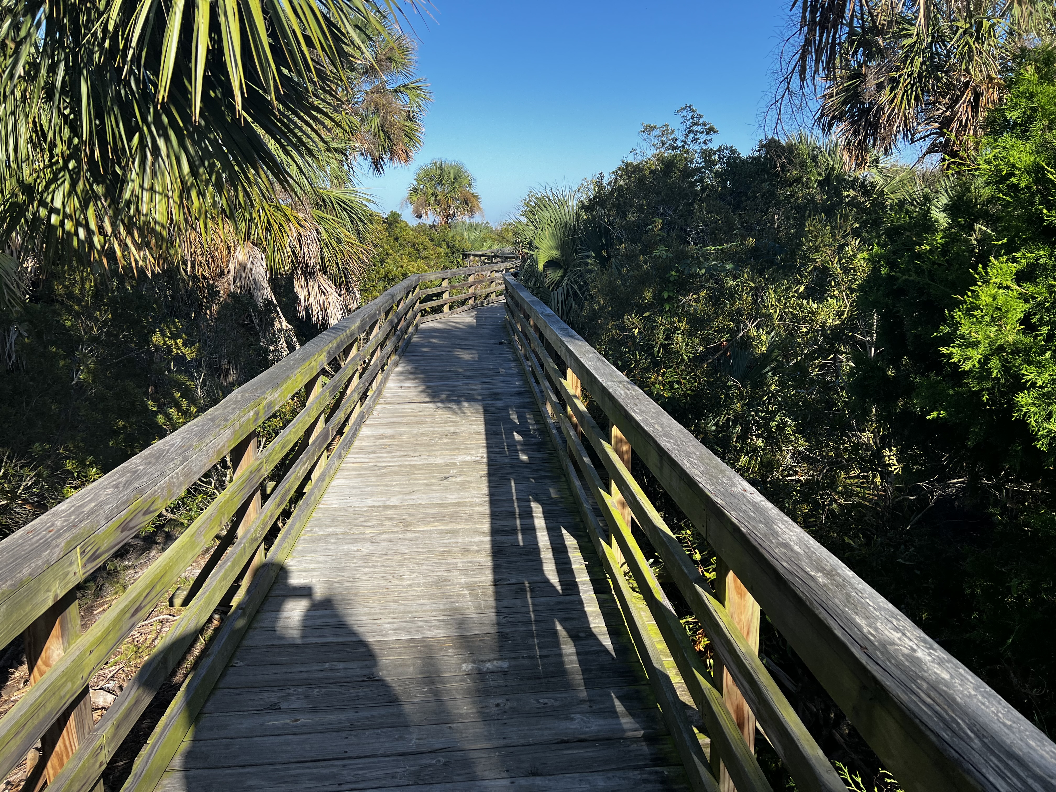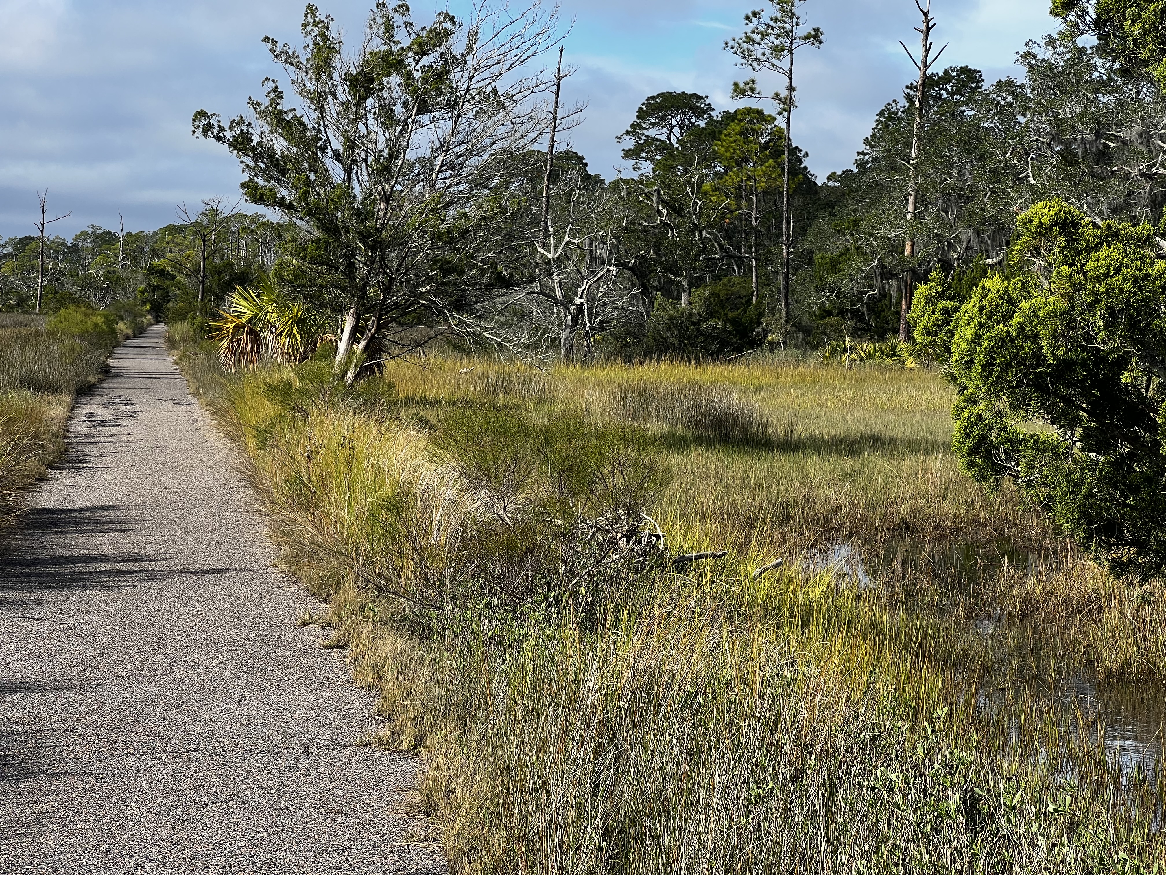 We did a bike ride around the entire island the first day (about 27km), on concrete, paved or well maintained sand trails. They even have a sweeper going along these trails to keep the falling leaves off. There are trails that go through marshes, beaches and forests, some on boardwalks.