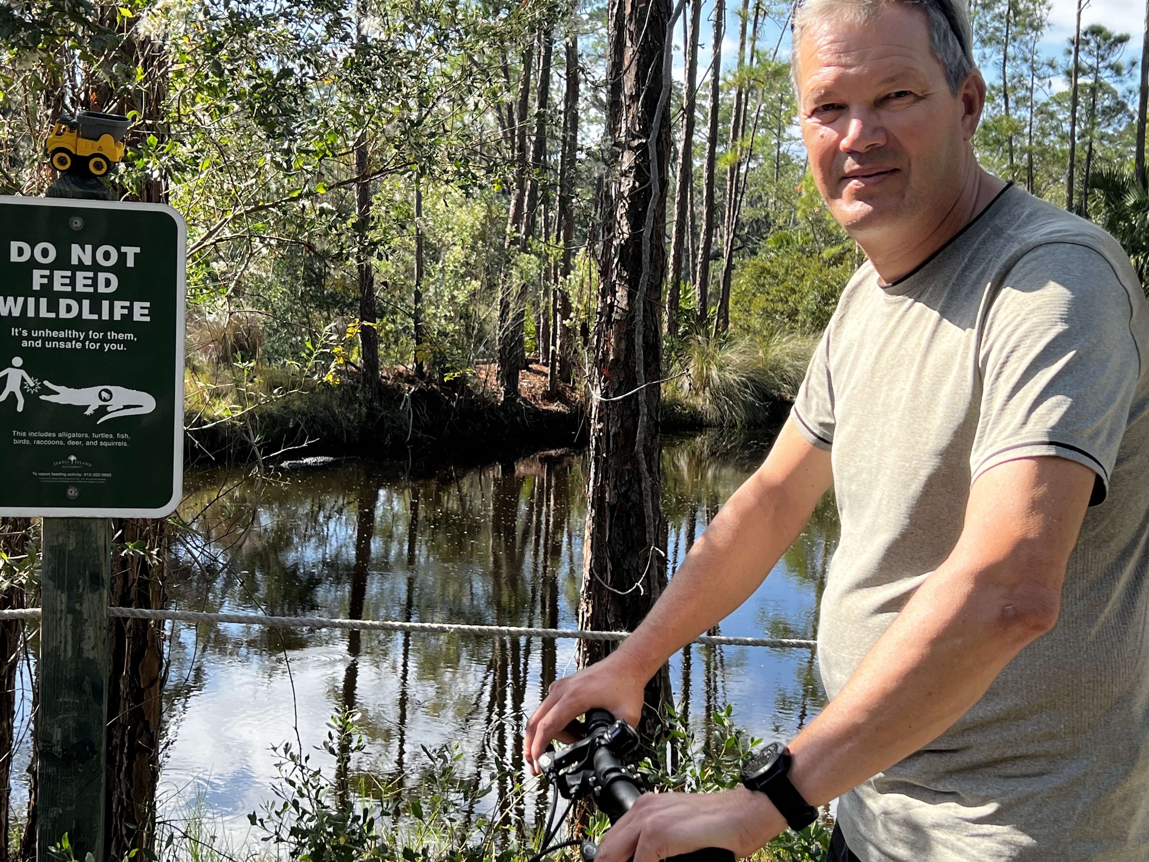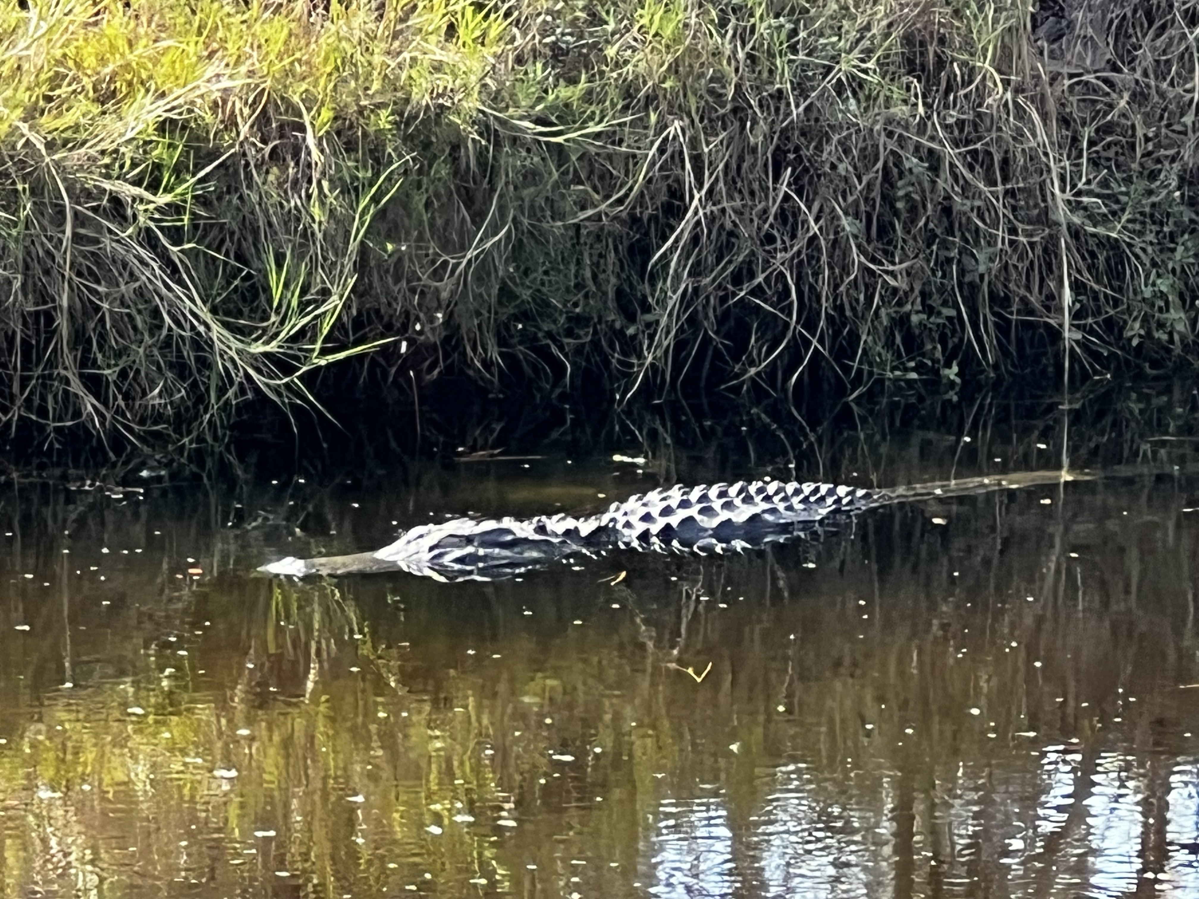 It was rather funny that we saw the alligator for the first time right by the warning sign – love the visuals! Then we started to think, maybe it’s a stuffed alligator, because we never saw it move. So we came back to the same spot hours later. Lo and behold, the alligator was still there but had actually moved further down the river…