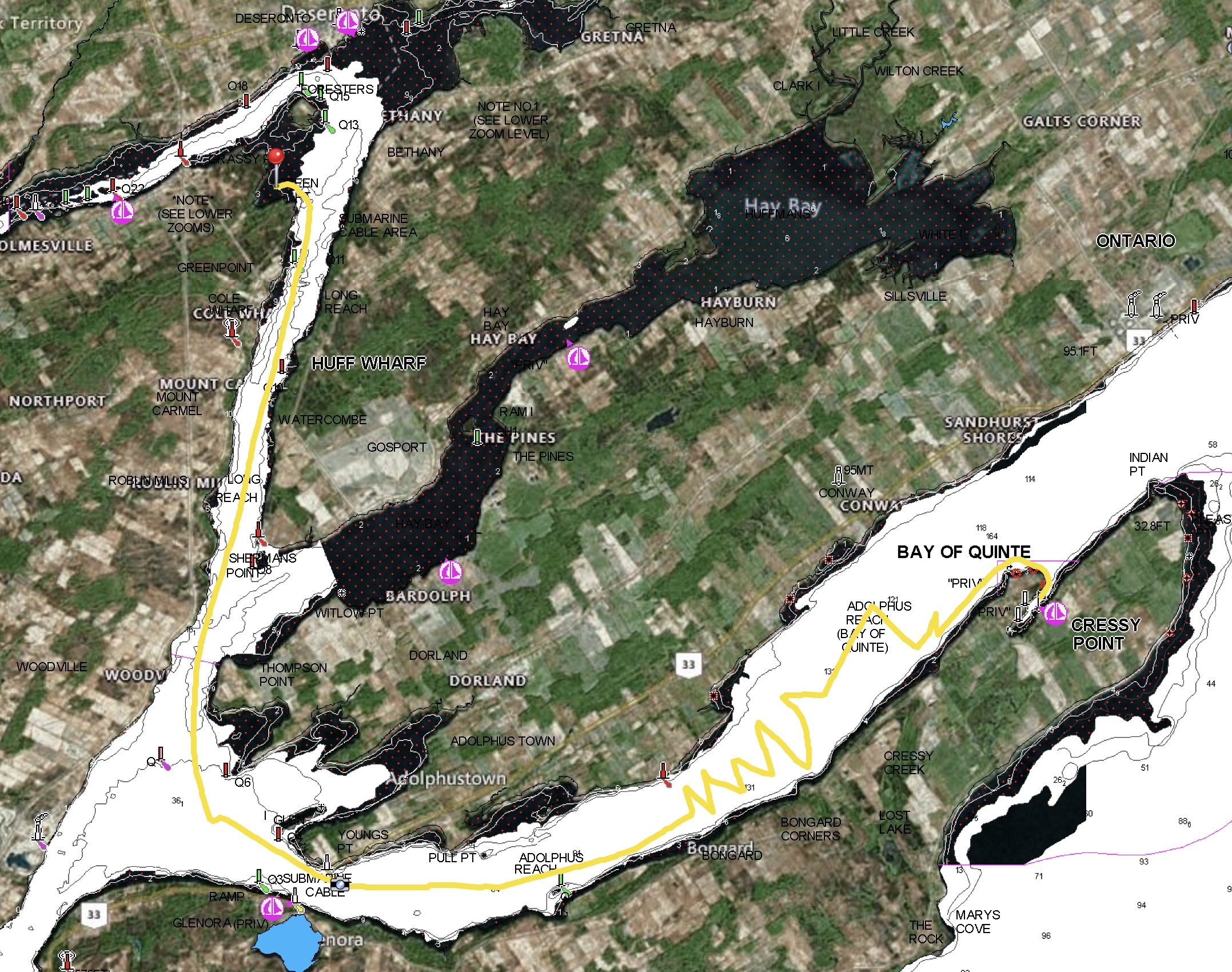 The inside passage is often used by pleasure craft to avoid the larger waves around the outside of Prince Edward County. As we were expecting some stronger seas, we decided to do this route over a couple of days. It had been a few years since we had sailed this area and we had some fond memories.