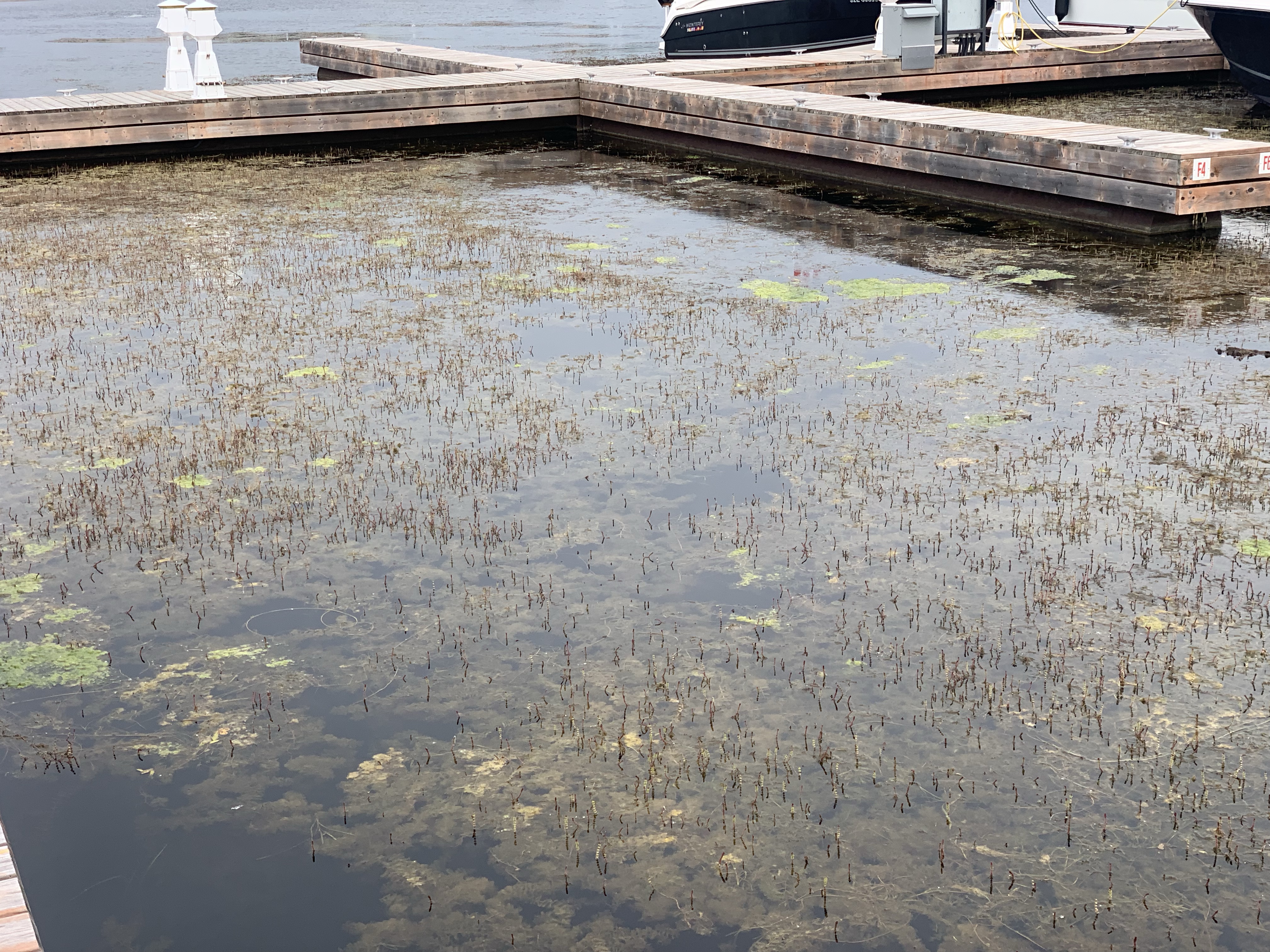 A note about Trent Port Marina, they do have ongoing issues with weed growth, and with the low water levels this year they were working hard to remove excess weeds. They have bubblers in main channels which move the water and inhibit the weed growth, and then they have a crew of half a dozen students with rakes that were raking up weeds in the slips, but best of all they have the weed munching machine in the video below.