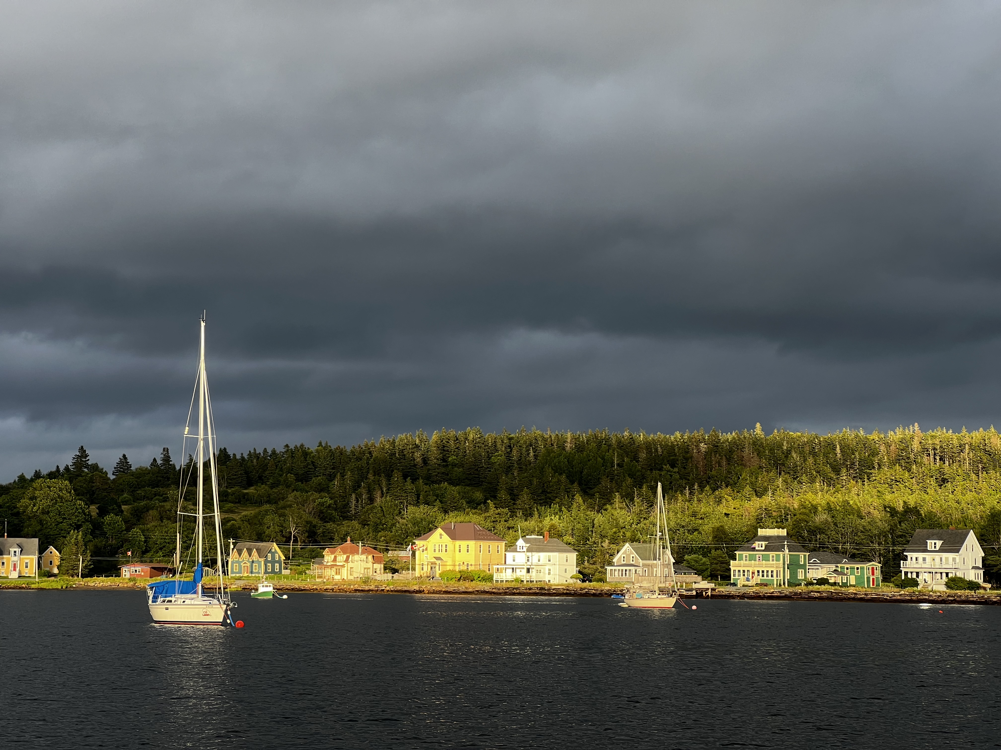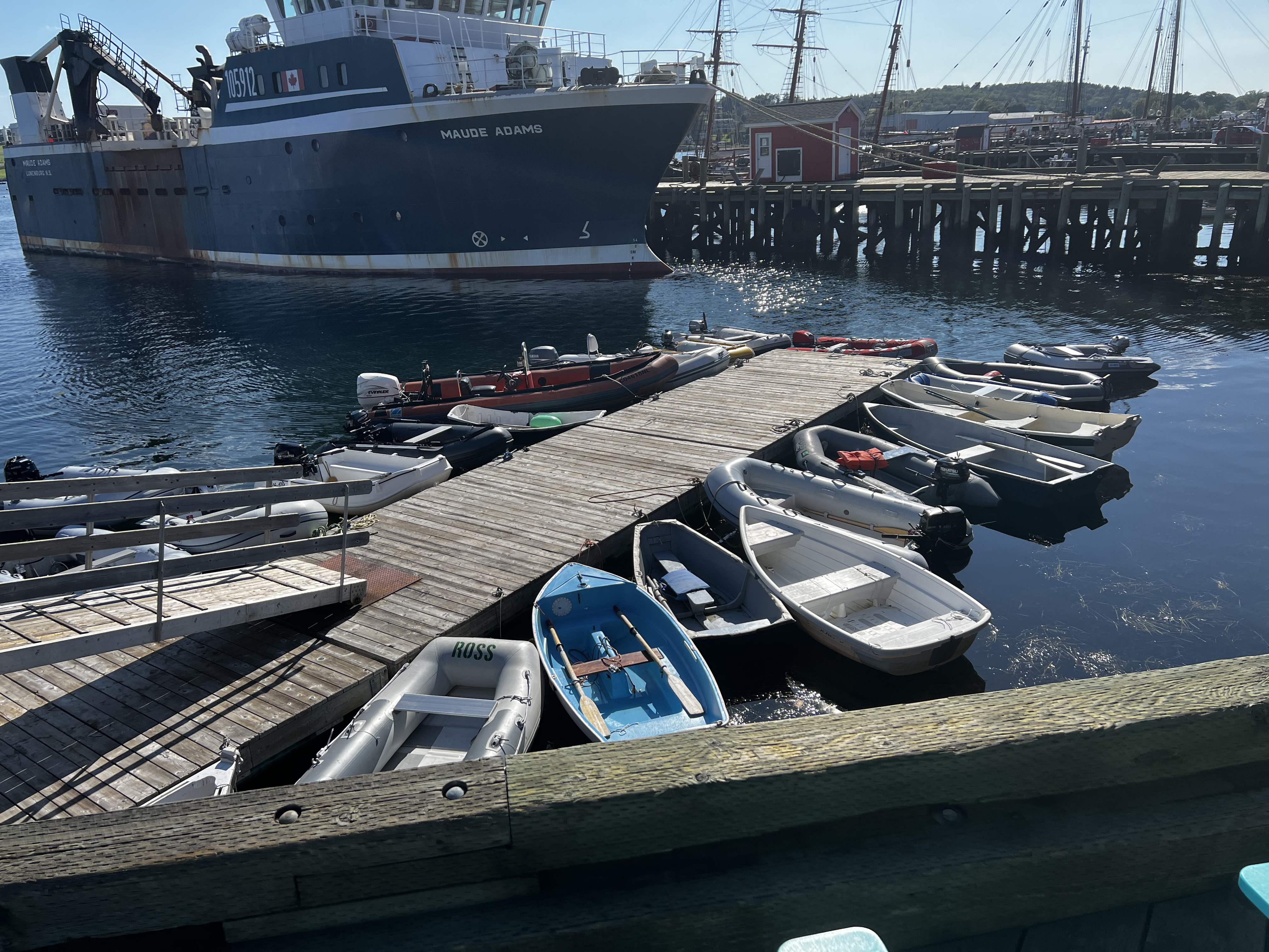 After another calm night here, we hoisted anchor and sailed to Lunenburg, where we dropped the hook amongst other moored and anchored boats. It’s a beautiful harbour, especially from the water, with traditional sailing vessels such as the Bluenose II and Eastern Star sailing daily in and out of the harbour for tours. Yet there’s also Whale watching and Harbour tour boats, and the anchorage is a bit exposed to the south. Not a quiet anchorage but the town is fun to walk around in, shop or stop in a restaurant. There were lots of quaint little galleries to walk through as well as the Fisheries Museum, which packed much more information than its humble outside would suggest. We learned a lot about how lobster and other fish were caught and also got more of a sense how fishing is such an intricate part of maritime culture and history. Well worth the stop.