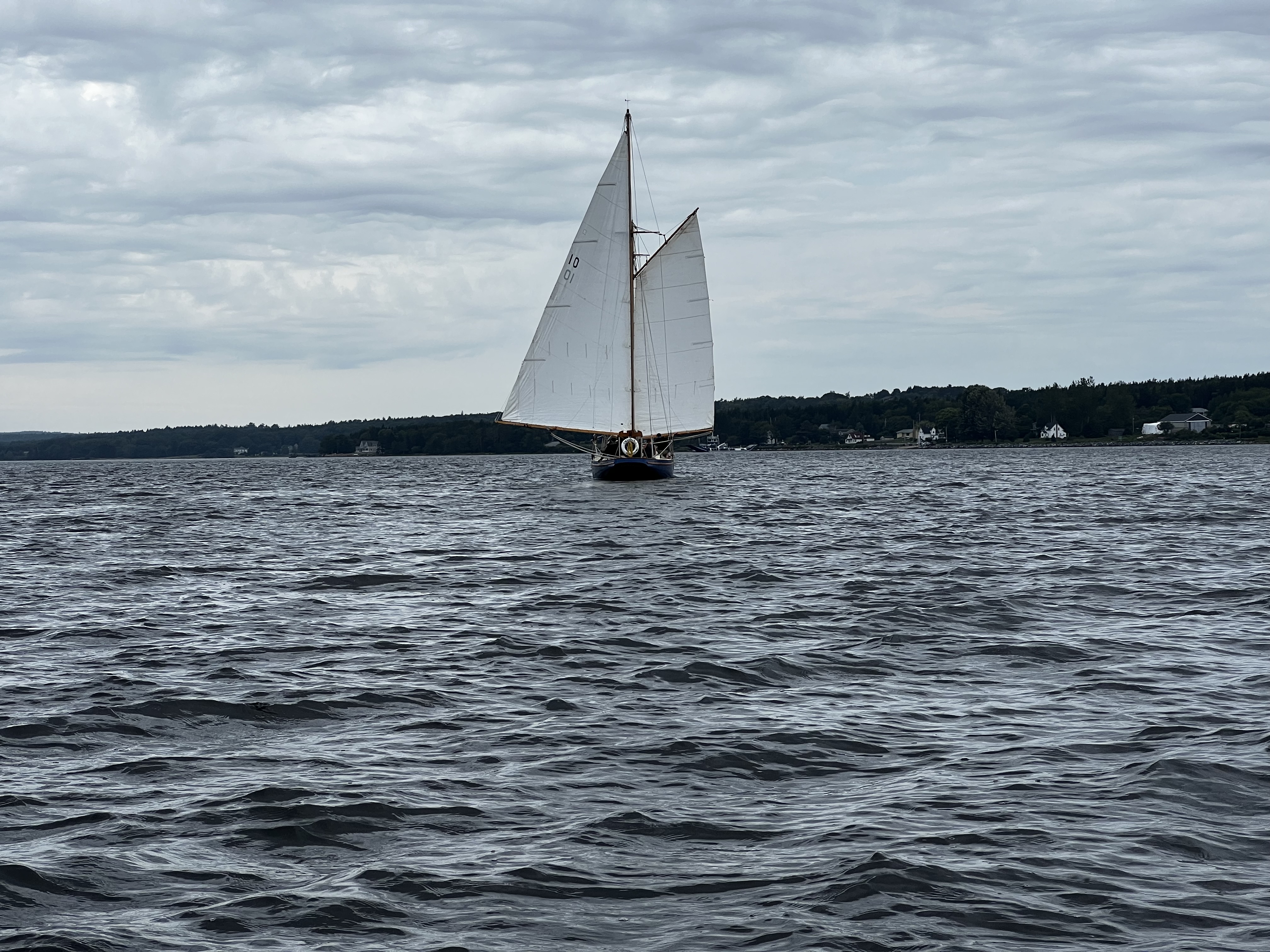 We stayed in this anchorage for another day as the rain and wind howled, and were delighted to see about 6-8 schooners of varying sizes tack up and down the bay under full sail. They were taking part in the annual schooner races that held each year in LaHave, and moored in the same bay.