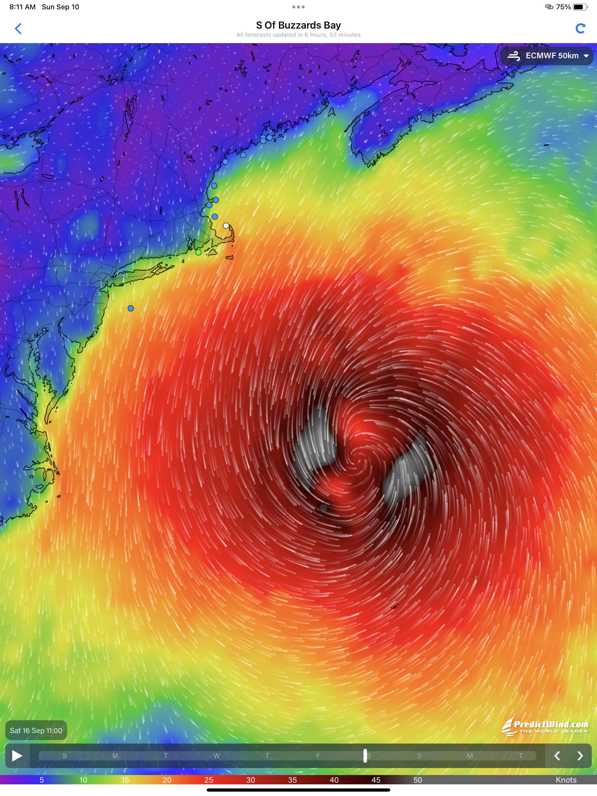 Mike assured us that he had seen about 9′ of depth around the mooring next to him, even at low tide. So we moved Vitae and this was our spot for the next 3 days. It’s always a bit nerve racking when you trust your home to a mooring, as you don’t know how well it’s maintained. But the town of Old Saybrook it pretty stringent at inspecting them every year. And we had no issues with depth or holding while Lee moved by. We only got some gusts up to 20kts and by early Saturday morning the winds were already getting lighter.