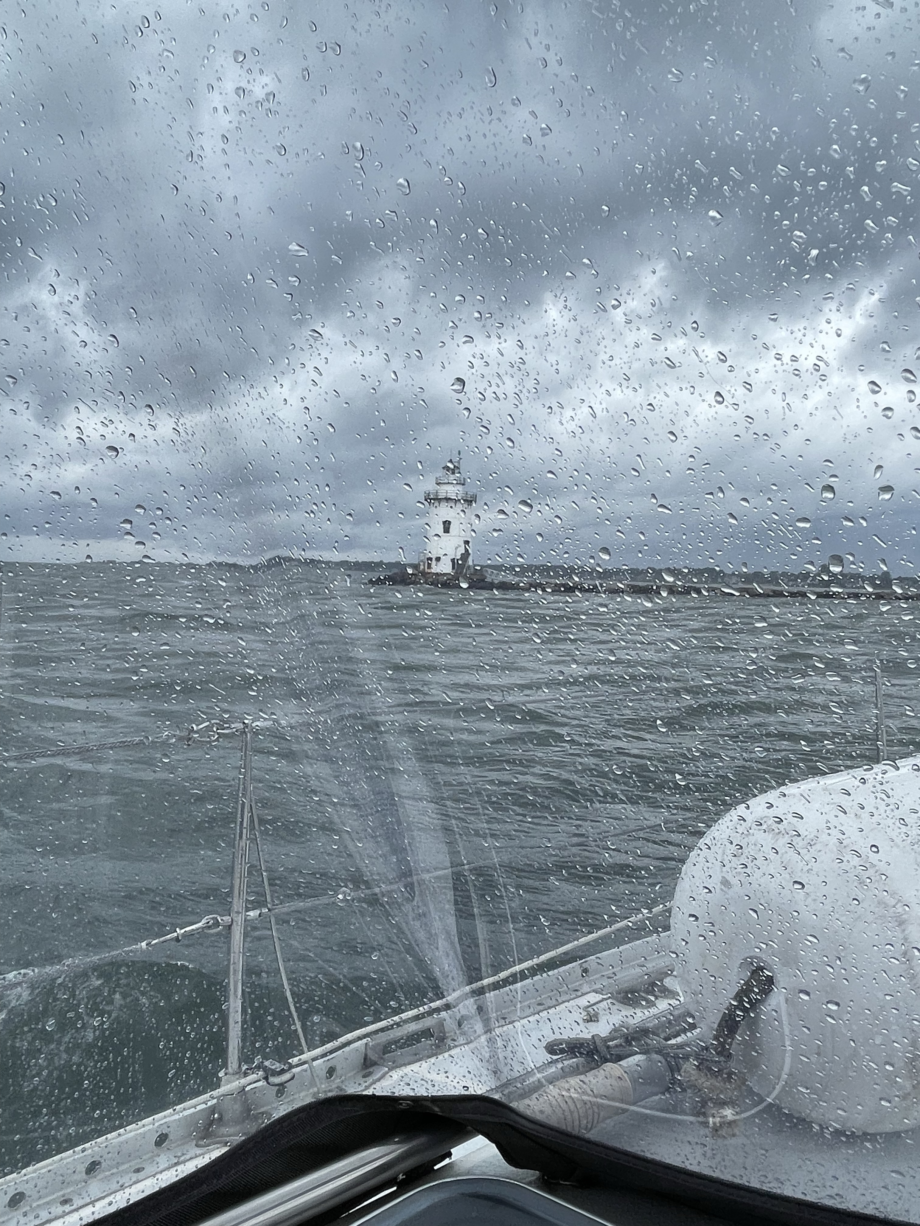 There are some strong currents in the Long Island Sound, especially around Race Rock Light and Reef, just south west of Fishers Island. Although we were not entering the Long Island Sound from the Atlantic, we could feel the current increase the next morning on our way past this light house. We motored with the jib and were moving along quiet well. Our destination was the Connecticut River. Here we had scoped out a protected basin on the west side up the river in Old Saybrook. It offered free town moorings for 3 days, and should Lee change his mind and turn more into the Long Island sound, we had options to go a long way up the Connecticut river to find shelter. Also, our university friends Paul and Karen lived about a half hour away and would be able to visit us.