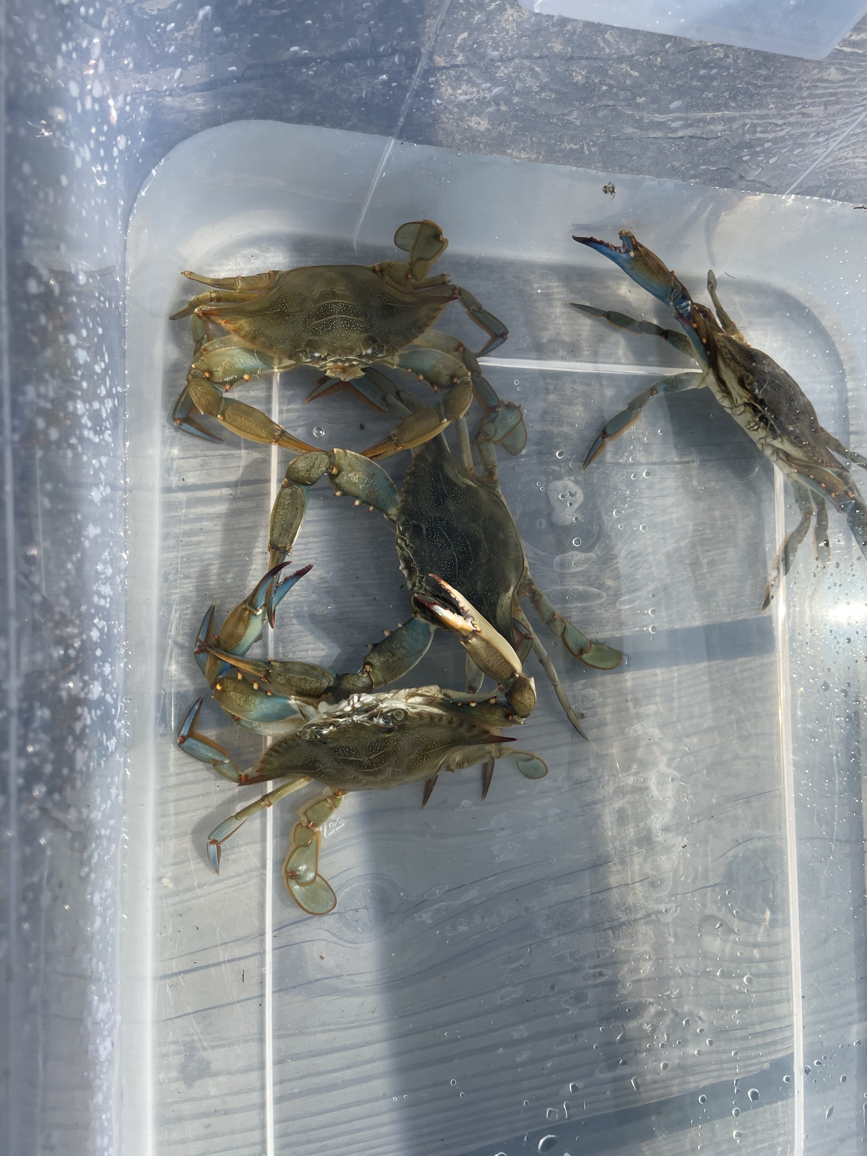 The town dock was available for dinghies and we watched many locals fish for blue crab here. One just has to tie an old chicken leg to a string, dangle it off the dock and pull it up a few minutes later with a crab hanging on. You are only supposed to keep the bigger ones and there are 2 nails on the dock that you can use to measure the size of the crab.