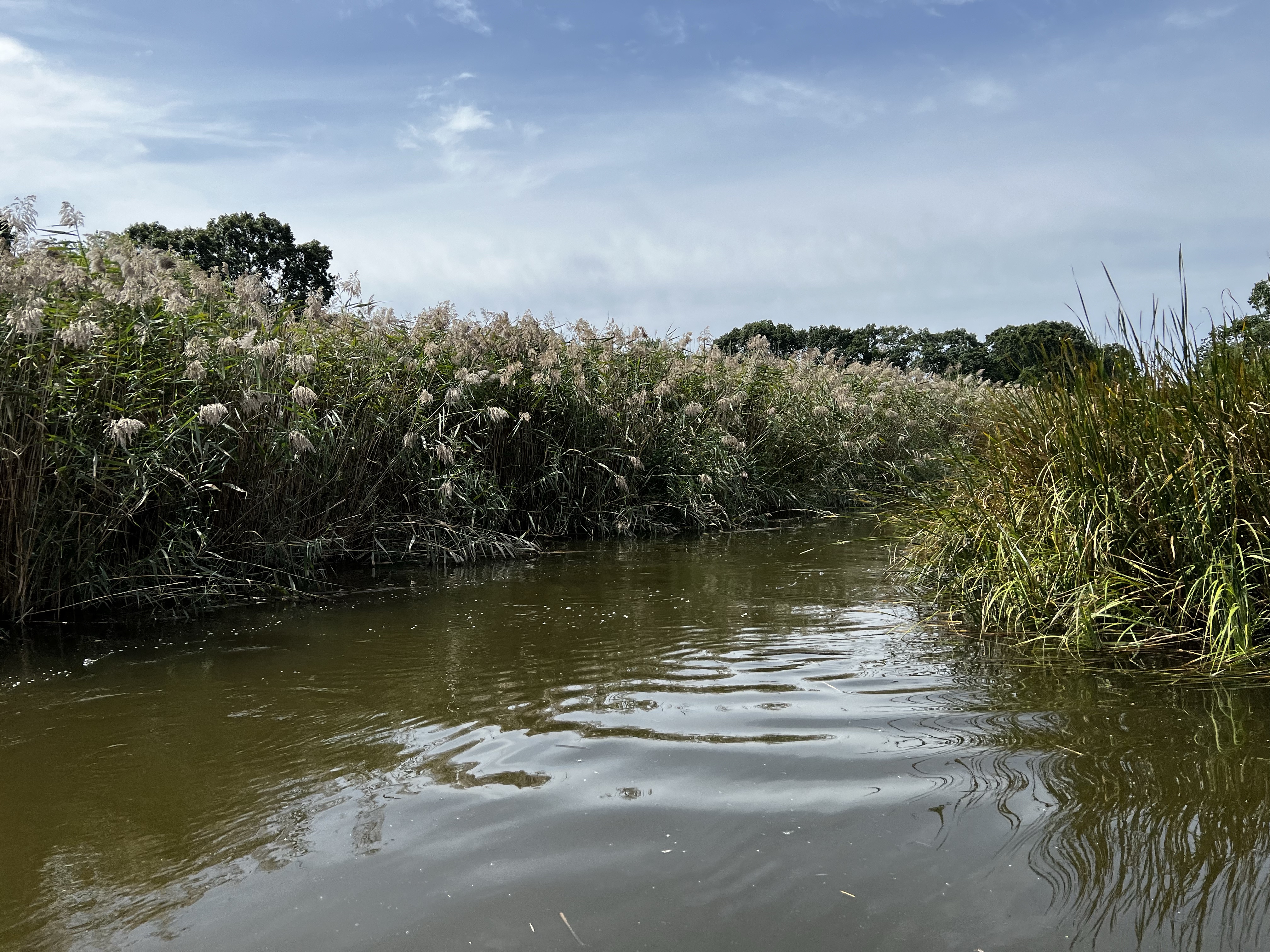 We really enjoyed going for runs along the town streets, shopping at Walt’s Food Market on Main St. or taking the dinghy up into the reedy shoreline along the north part of the bay. The photo of the sign below shows this area as the Connecticut River Estuary Canoe/Kayak Trail. The star marks the town dock at Sheffield St. where we were anchored. Provisioning was relatively easy walking to a Stop & Shop Grocery Store and a Wine and Liquor store.