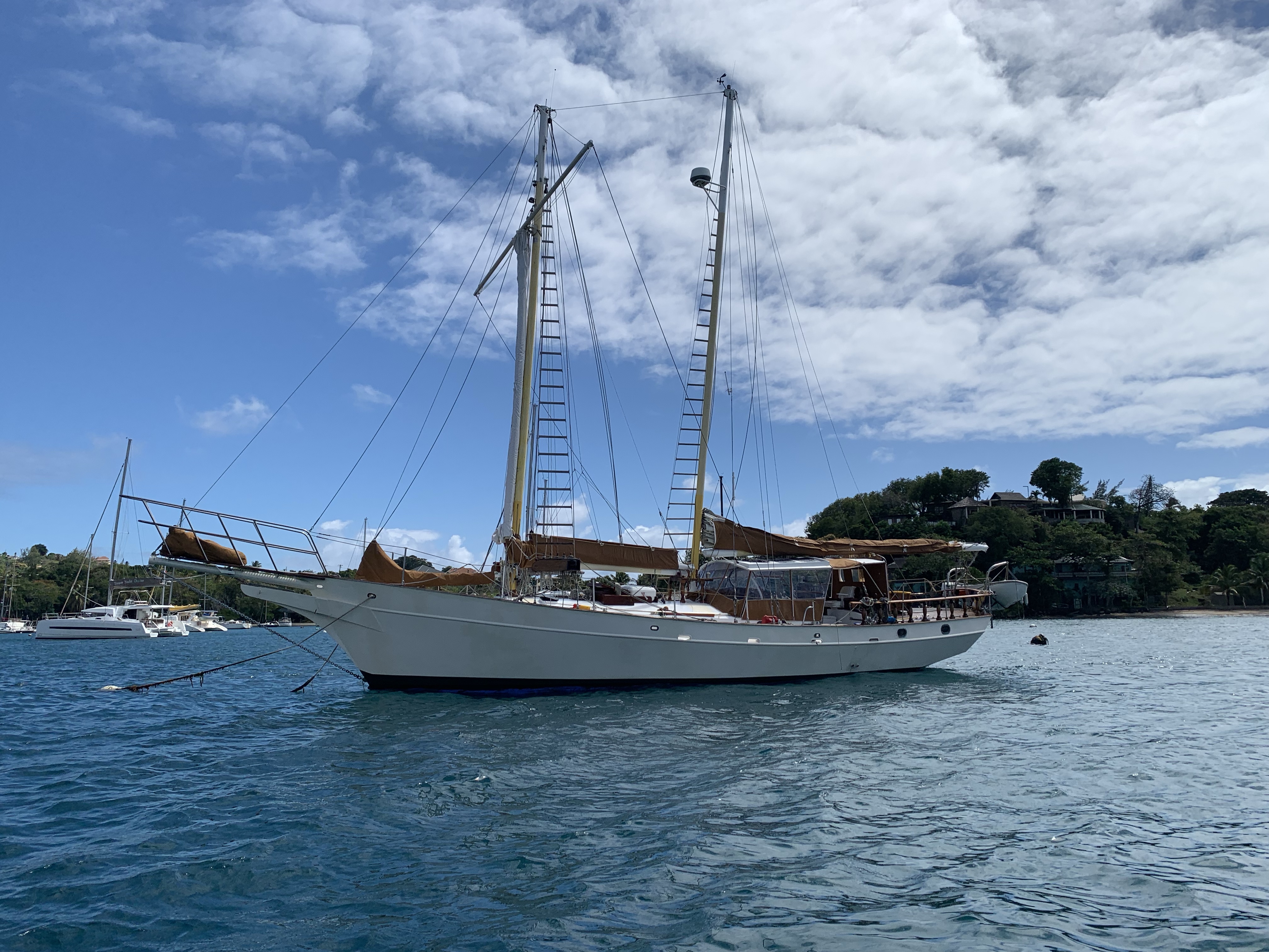 While we were having our snacks a striking looking schooner we had noticed the day before seemed to like our idea and followed our example. It was “Wylde Swan” – the worlds largest and fastest topsail schooner. She can sail up to 18kts and was built in Germany as a steamship for the herring fleet. How cool to get a closer look at it. She was on a trip from Anguilla down to Tobago and back, when our path crossed.