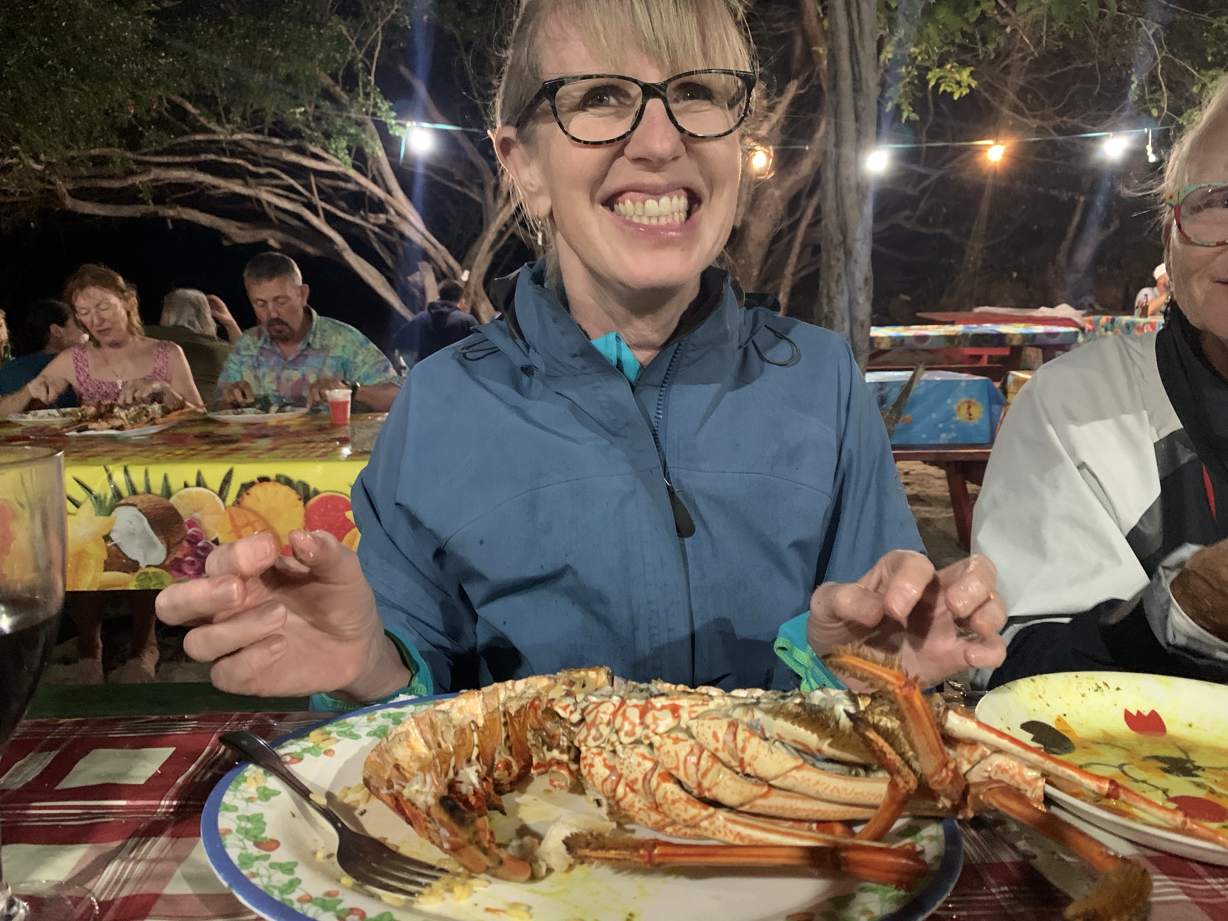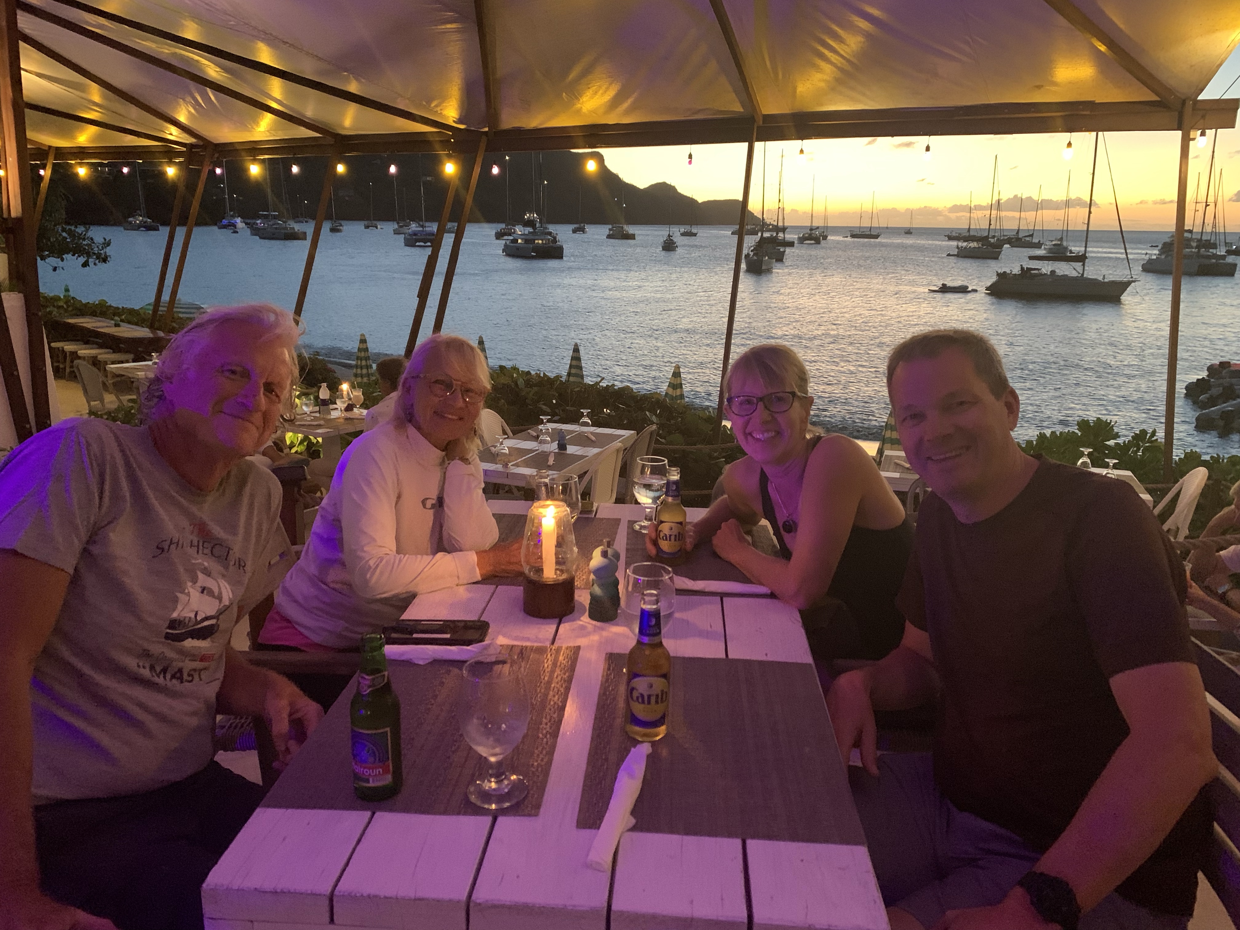We’ve also had some nice meals at ocean side beach restaurants sitting outside in the warm evening breeze. While in the Tobago Cays we went to a beach BBQ put on by locals. Its a sort of cooperative and from his regular visits Rob has become friends with Captain Neil. Be sure to look for him if you visit. We ate grilled lobster and fish. The Tobago Cays are a really neat place to anchor as they consist of a bunch of small, uninhabited islands (a nature reserve) sheltered by large reefs to the east. You can anchor behind the reef which will break the waves but you get the full wind straight from the ocean and there’s nothing else between you and Africa except thousands of miles of ocean. Its a great spot to spend a few days.