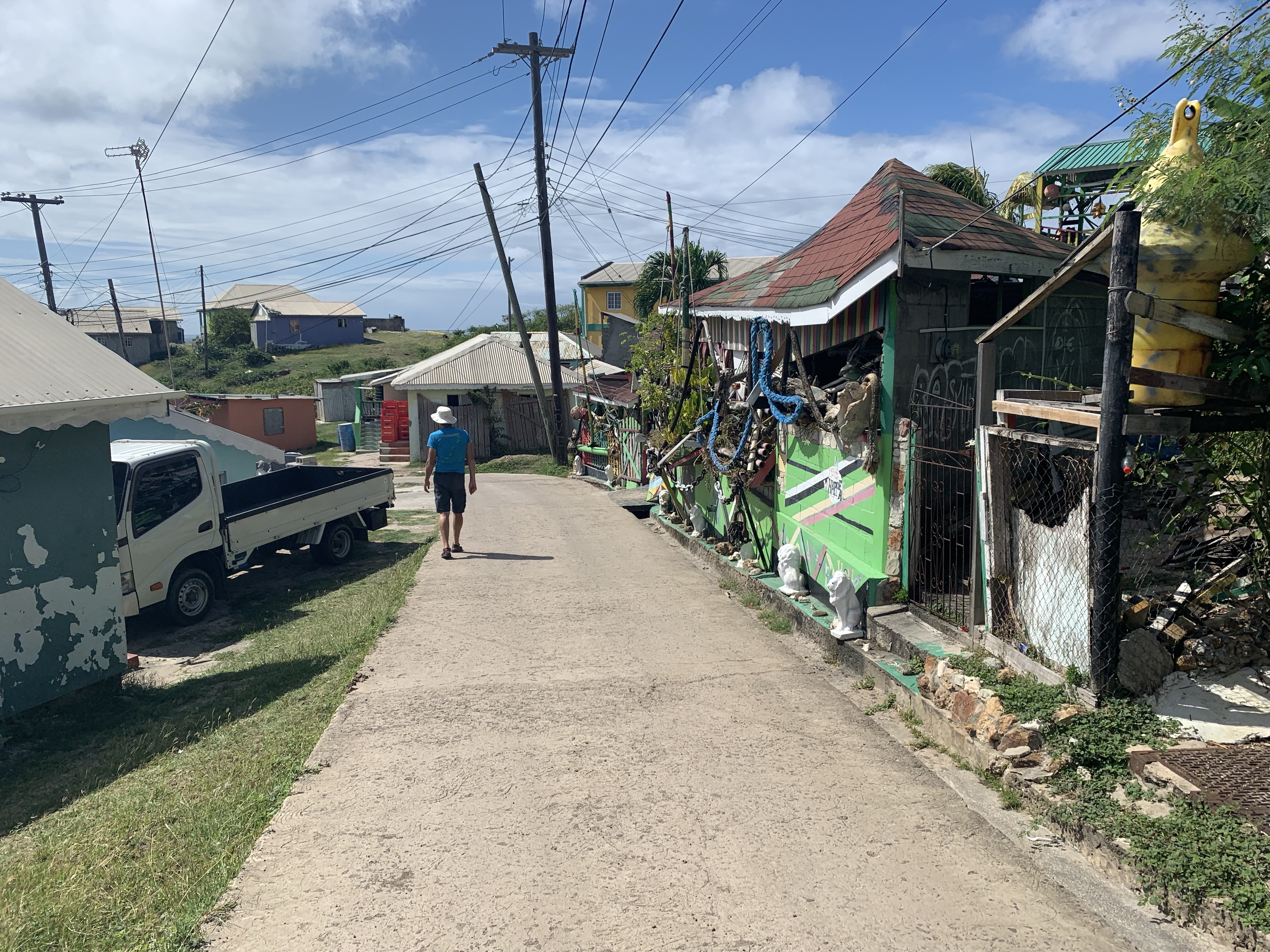 There are several initiatives to “improve” the islands and make them more appealing for visitors. Steps are being taken on the ecological front as well, protecting sea life such as turtles, corals and reefs but also the reduction of garbage and pollution on land. Even Barry was surprised to see public garbage cans on our walk through Union. They display some info about local species on the outside, and slogans like “Use me for your trash”. Barry had to look inside one to make sure, and he said he had not seen this before. Garbage and recycling are often an issue on small islands and require special efforts to deal with it properly.