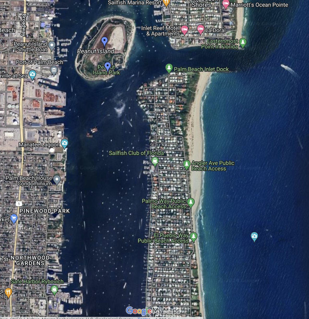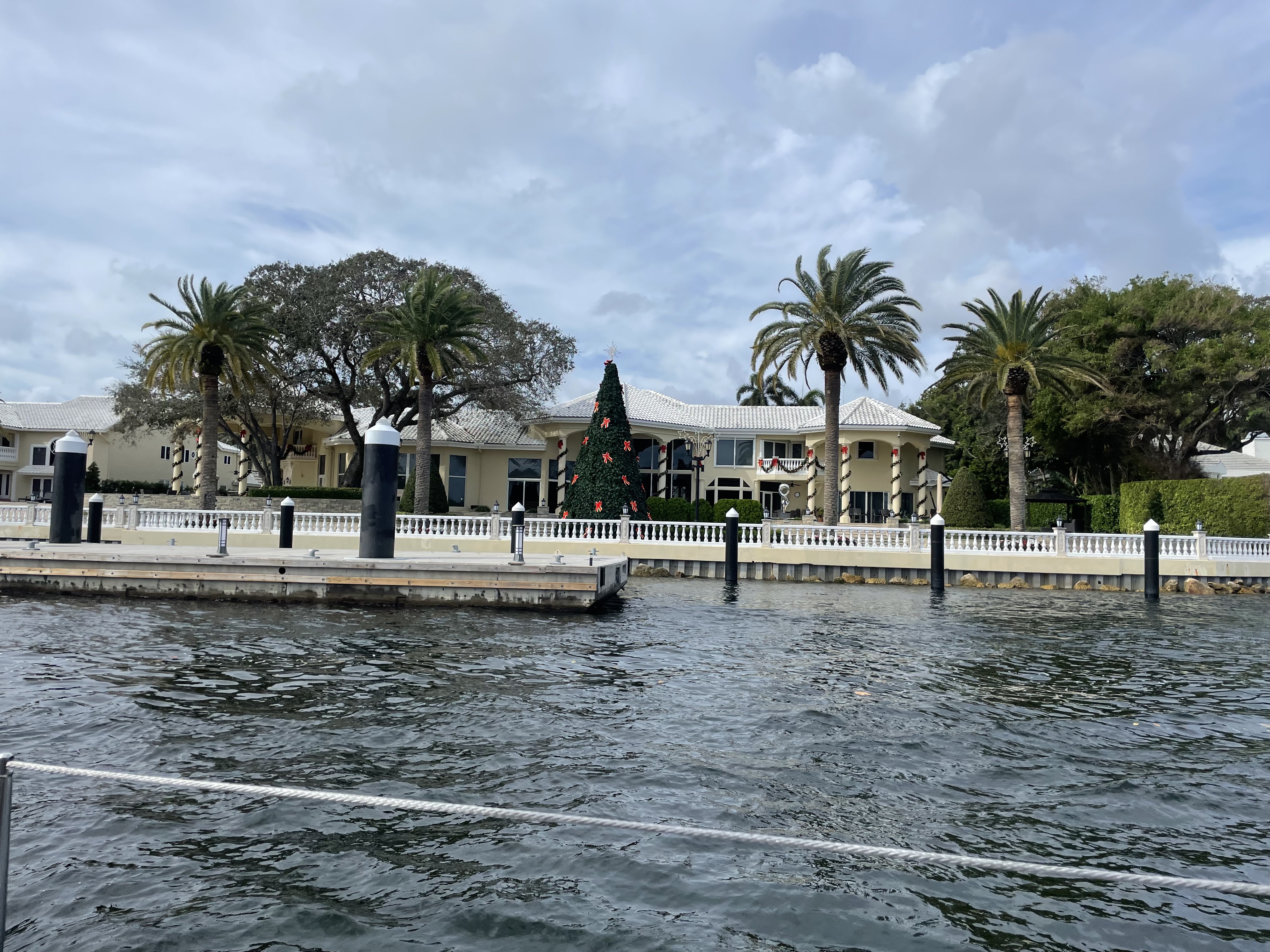 It wasn’t a long day from our last anchorage at Hobe Sound to get into Lake Worth in West Palm Beach. It took us only 6h even with having to time 5 bridge openings. We lucked out that we were just ahead of a bunch of faster travelling sailboats which passed us one by one. So we ended up at the end of the queue of boats but that kept the bridges open longer and we could just squeak through – we had very friendly bridge tenders who kept the bridge open!