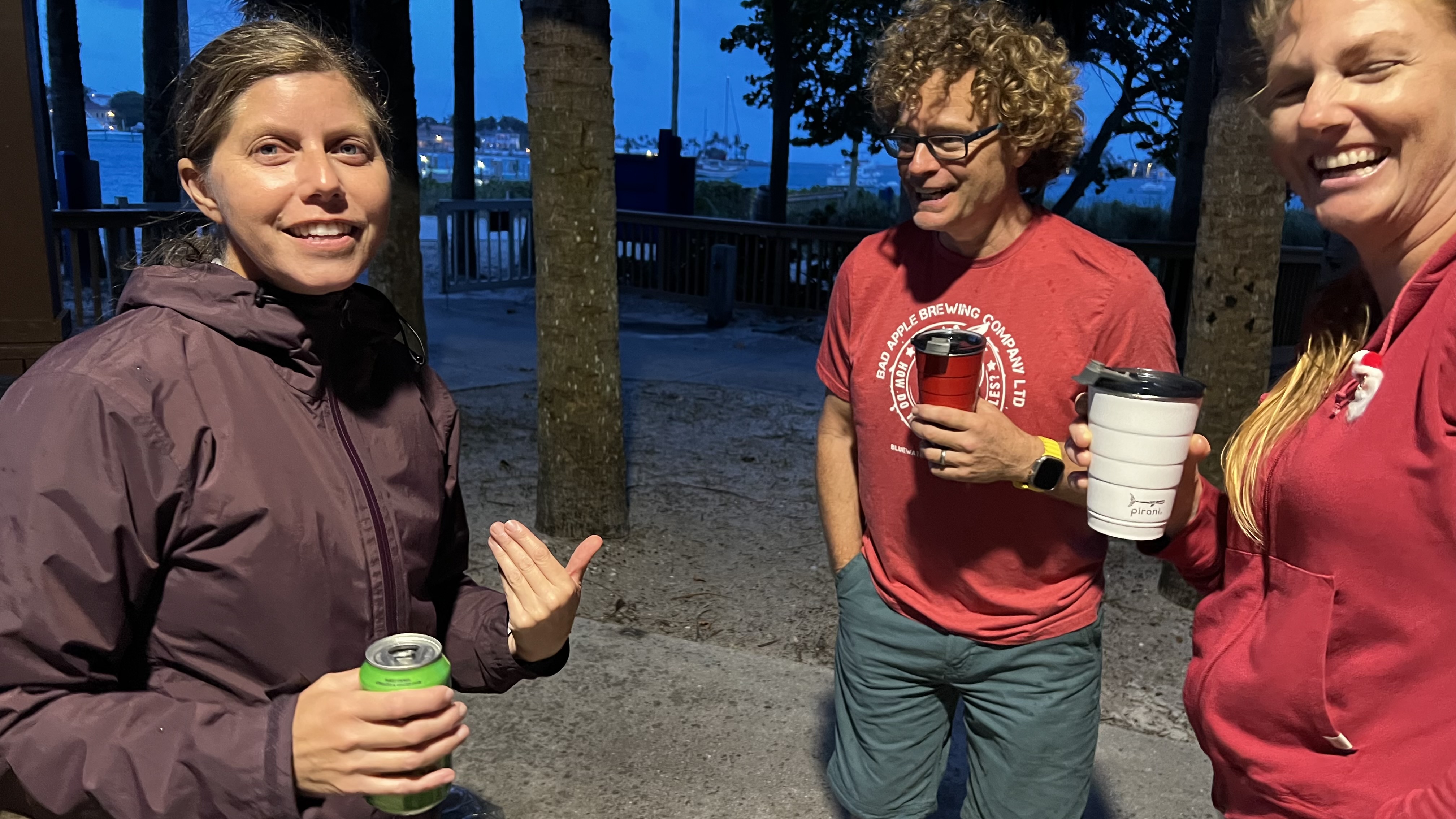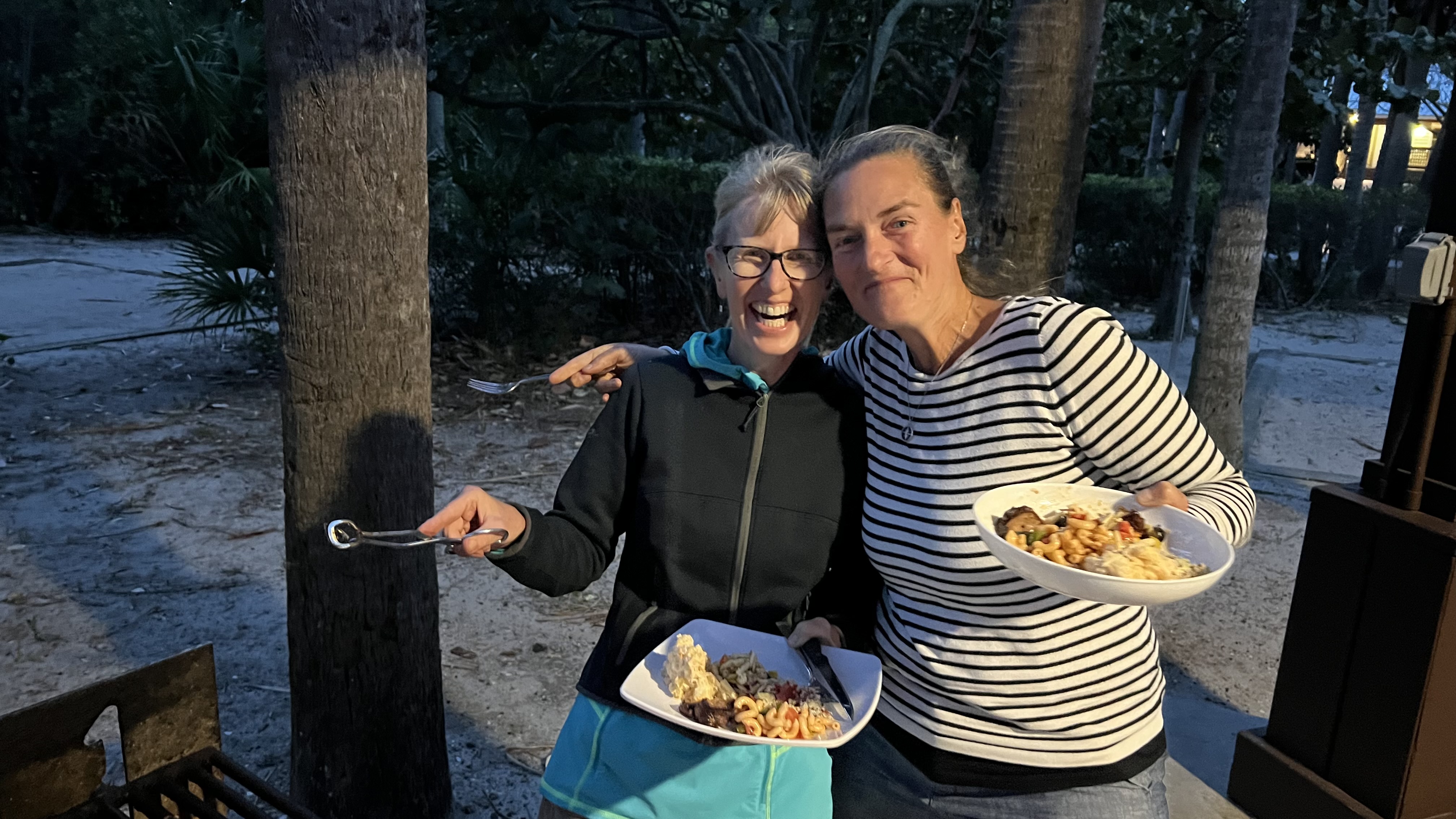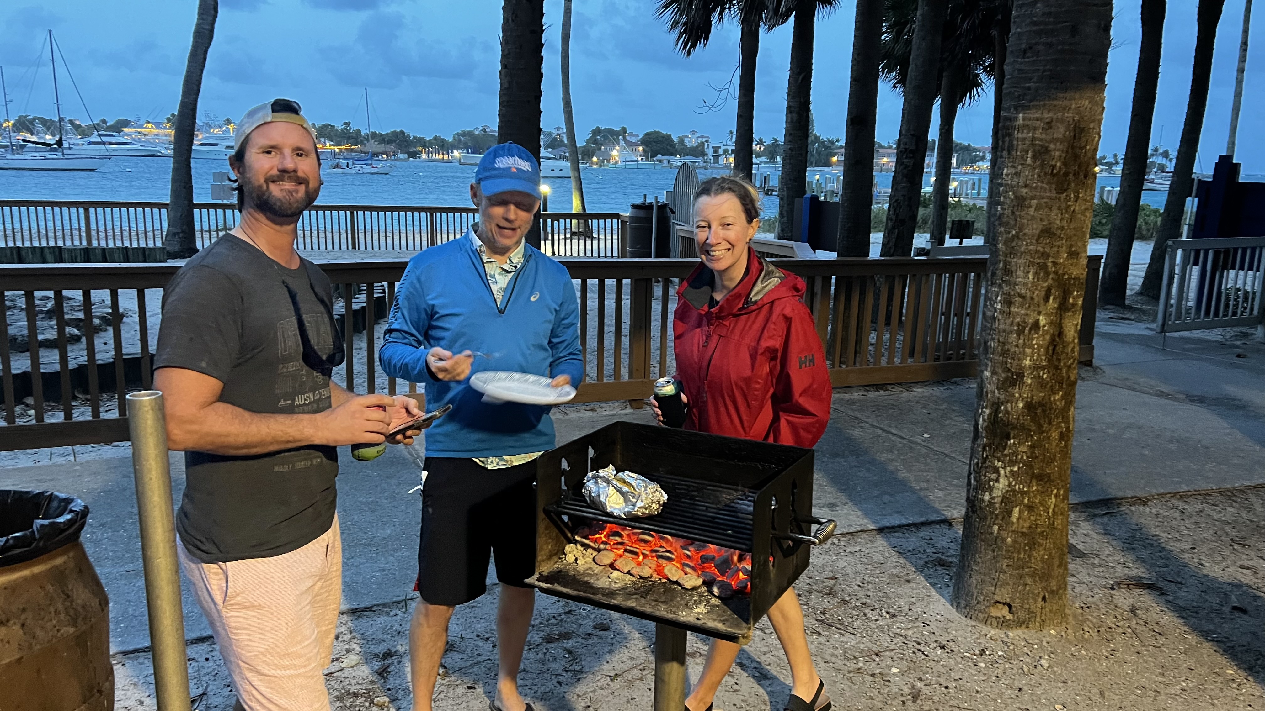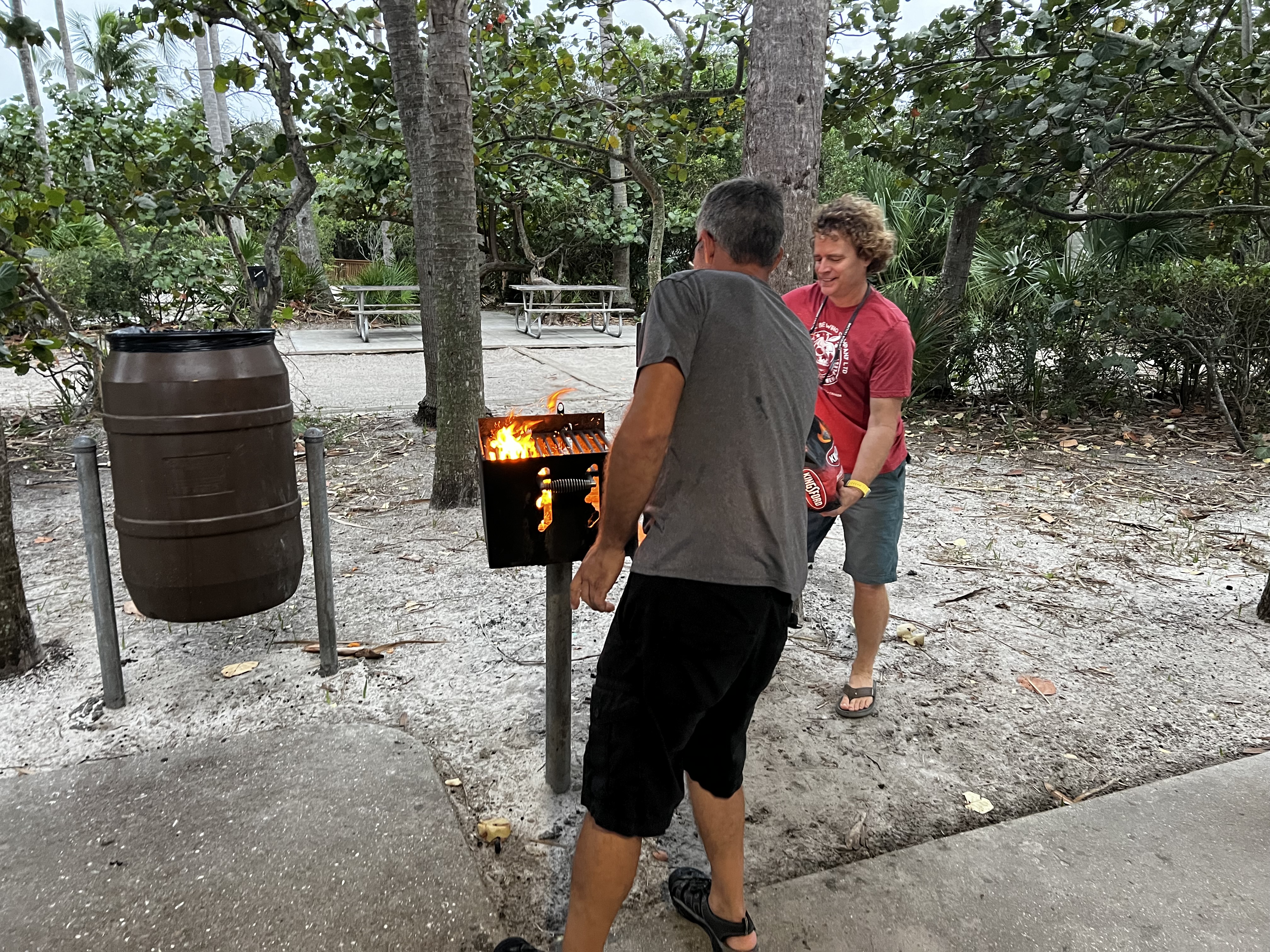 Our group had grown even more as Dominique and Yannick on Laloup had pulled into West Palm as well. There was no way we could all get together for Christmas on one boat, restaurants would be too expensive, so we needed a place to have a potluck. What better place to do it than Peanut Island. But you weren’t aloud to drink alcohol on the island and you would have to leave at dusk. Mmmh! However, if you rented a camp site you could stay as late as you liked, you could have a fire/bbq and you could have alcohol. Perfect! And of course, there was lots available for the 25th, because who in their right mind would go camping on Christmas?!