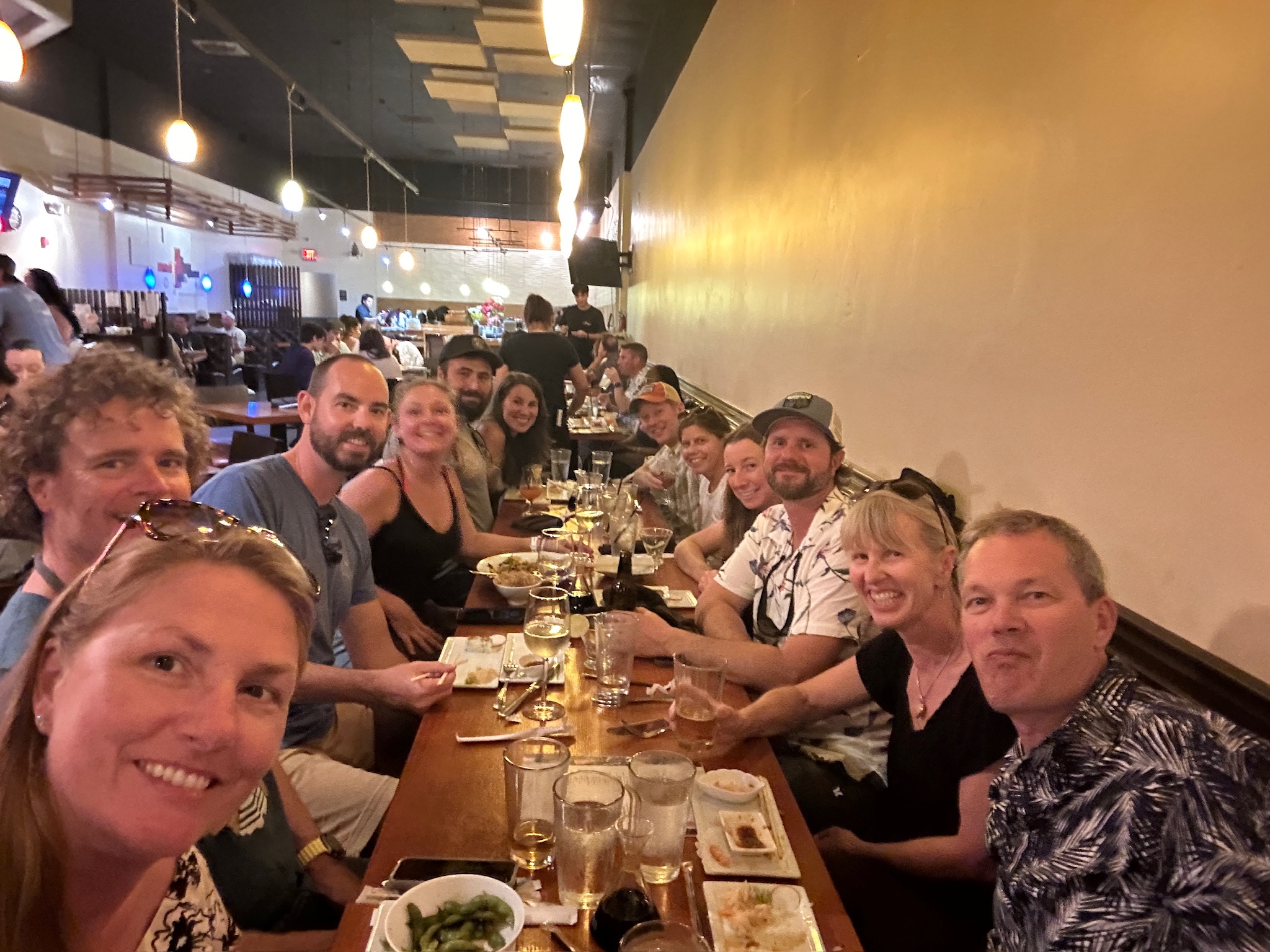 We stayed at this anchorage for 12 more days and the weather wasn’t bad everyday. One night we all (Foggy, Keeper, Willow, Mojo, African Queen and Vitae) got together for Happy Hour in town and then a fabulous sushi meal at Kabuki’s. It was so great to get off the boat and have some social time.