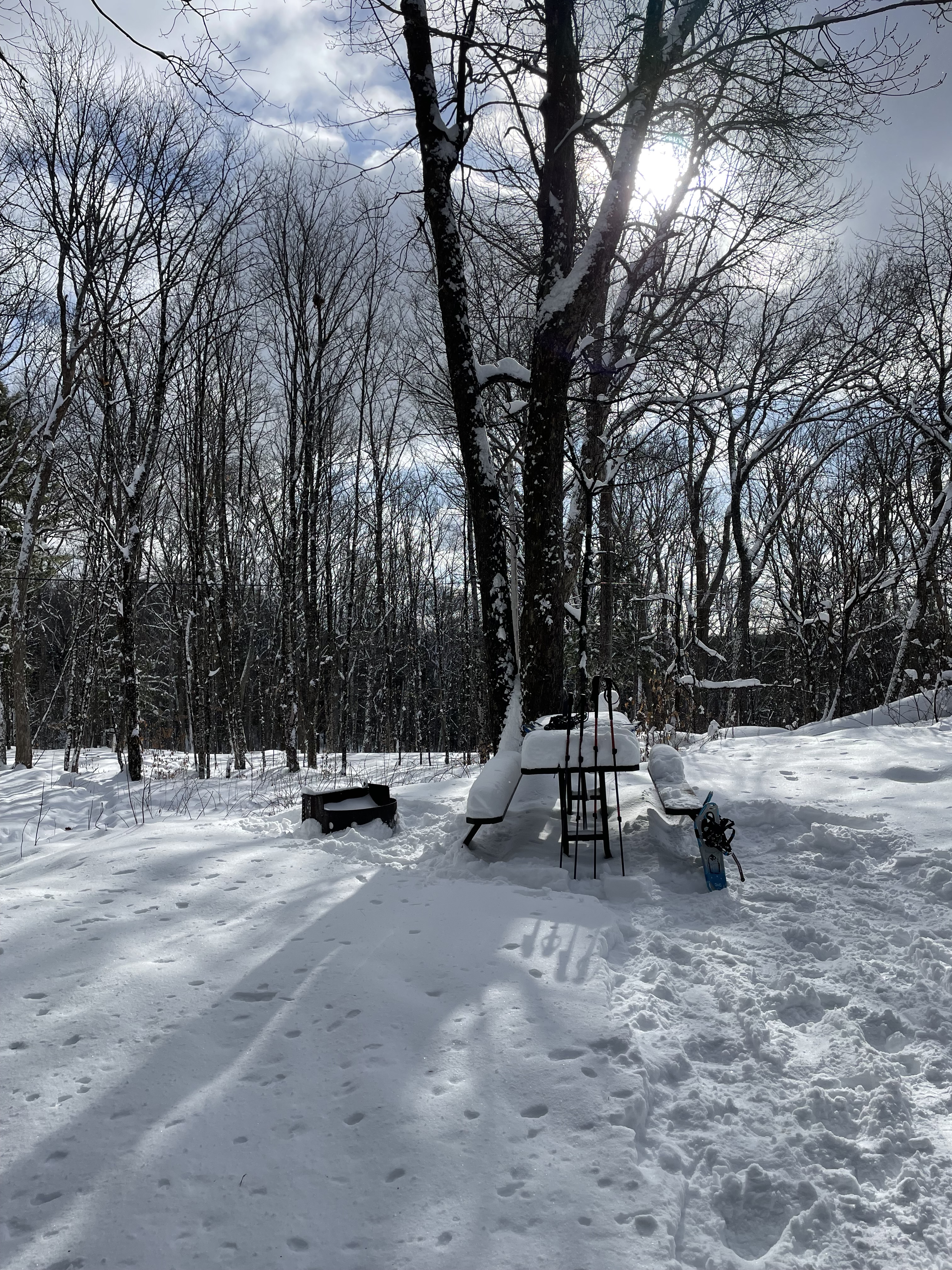 This one became another favourite this winter, once we had received a couple snow storms with lots of snow. The rocky terrain just north of Peterborough on Hwy 28 requires a little more snow coverage before the park will send its snow mobiles out to groom and set the classic track. We arrived just as a snow storm was in the forecast and hunkered down for 3 days. The park always seemed to have open sites with hook-up although not all camping loops are open for winter camping, we found a site right beside the ski trail and let the snow pile up around our van. The next morning the sun came out so we strapped on snow shoes and walked to explore. We hiked all the way back to the gate house just to see if the groomers would be out. They were planning to but it took them most of the day before they had come by our van for the first few loops of flattening the trails. No matter, we still went out and by the time we had skied for a couple hours, they were starting to track set. Trails just got better and better after that and even the 16km Blue Loop around the entirety of Silent Lake was open. It’s a great ski with access to 2 warm up huts on the way.